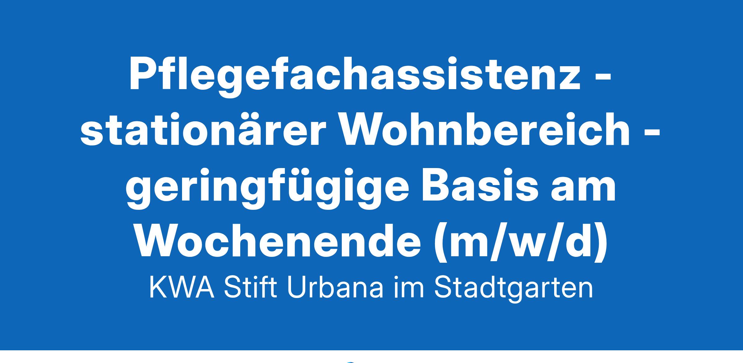 Für unser KWA Stift Urbana im Stadtgarten suchen wir zum nächstmöglichen Zeitpunkt: