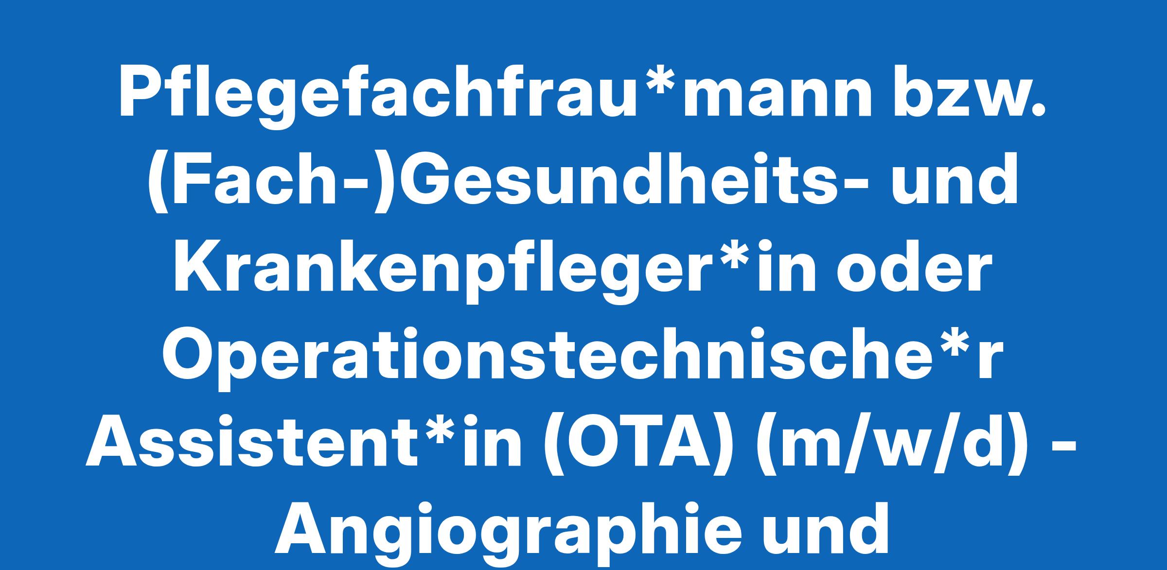 Pflegefachfrau*mann bzw. (Fach-)Gesundheits- und Krankenpfleger*in oder Operationstechnische*r Assistent*in (OTA) (m/w/d) - Angiographie und interventionelle Radiologie im Chirurgischen Zentrum