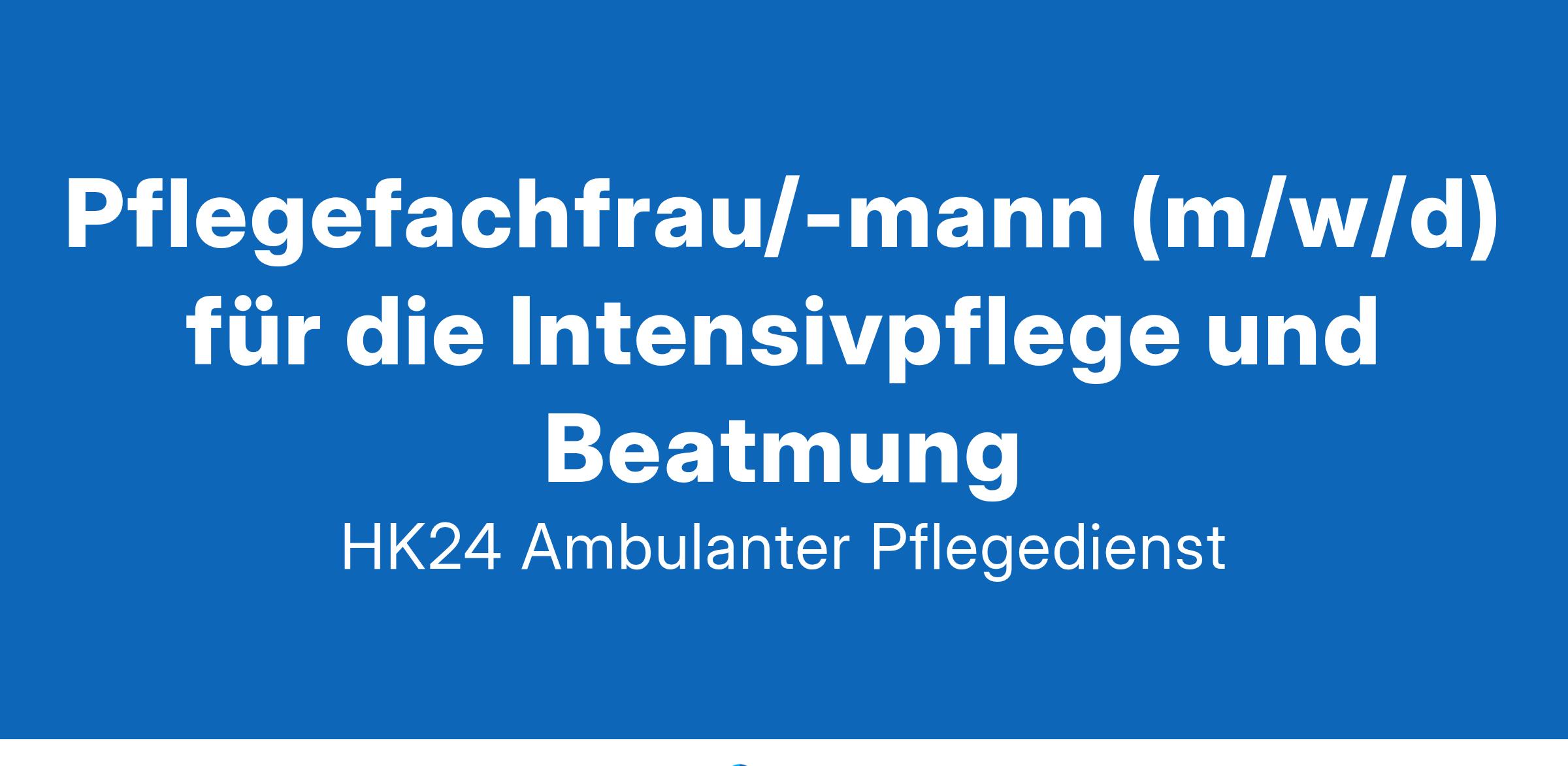 Wir freuen uns auf Deine aussagekräftige Bewerbung als Pflegefachfrau/-mann für die Intensivpflege und Beatmung (m/w/d).HK24 GmbH Ambulanter Pflegedienst
