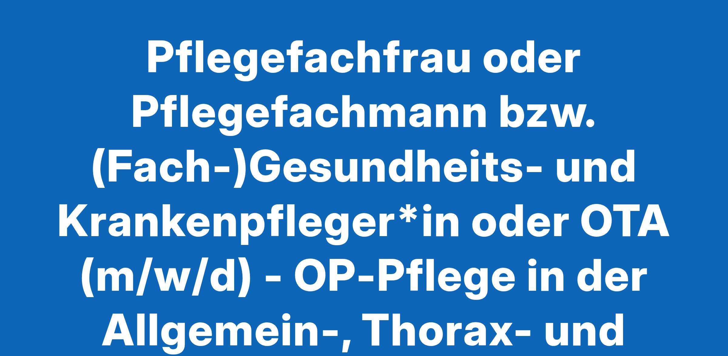 Pflegefachfrau oder Pflegefachmann bzw. (Fach-)Gesundheits- und Krankenpfleger*in oder OTA (m/w/d) - OP-Pflege in der Allgemein-, Thorax- und Gefäßchirurgie sowie Urologie im Chirurgischen Zentrum