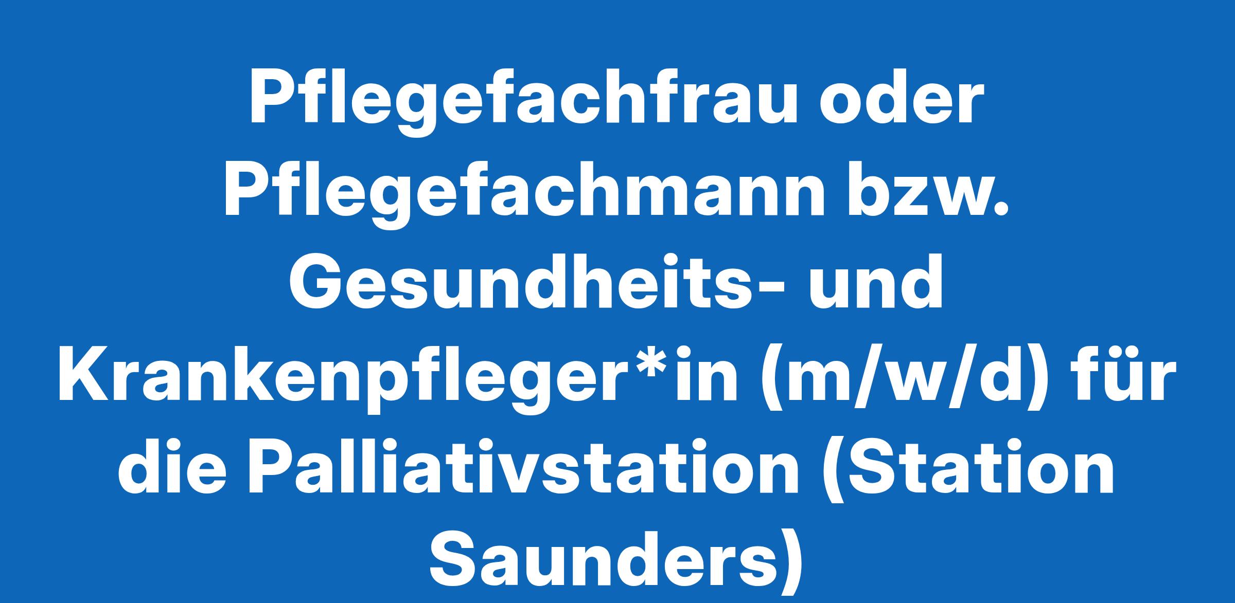 Pflegefachfrau oder Pflegefachmann bzw. Gesundheits- und Krankenpfleger*in (m/w/d) für die Palliativstation (Station Saunders)
