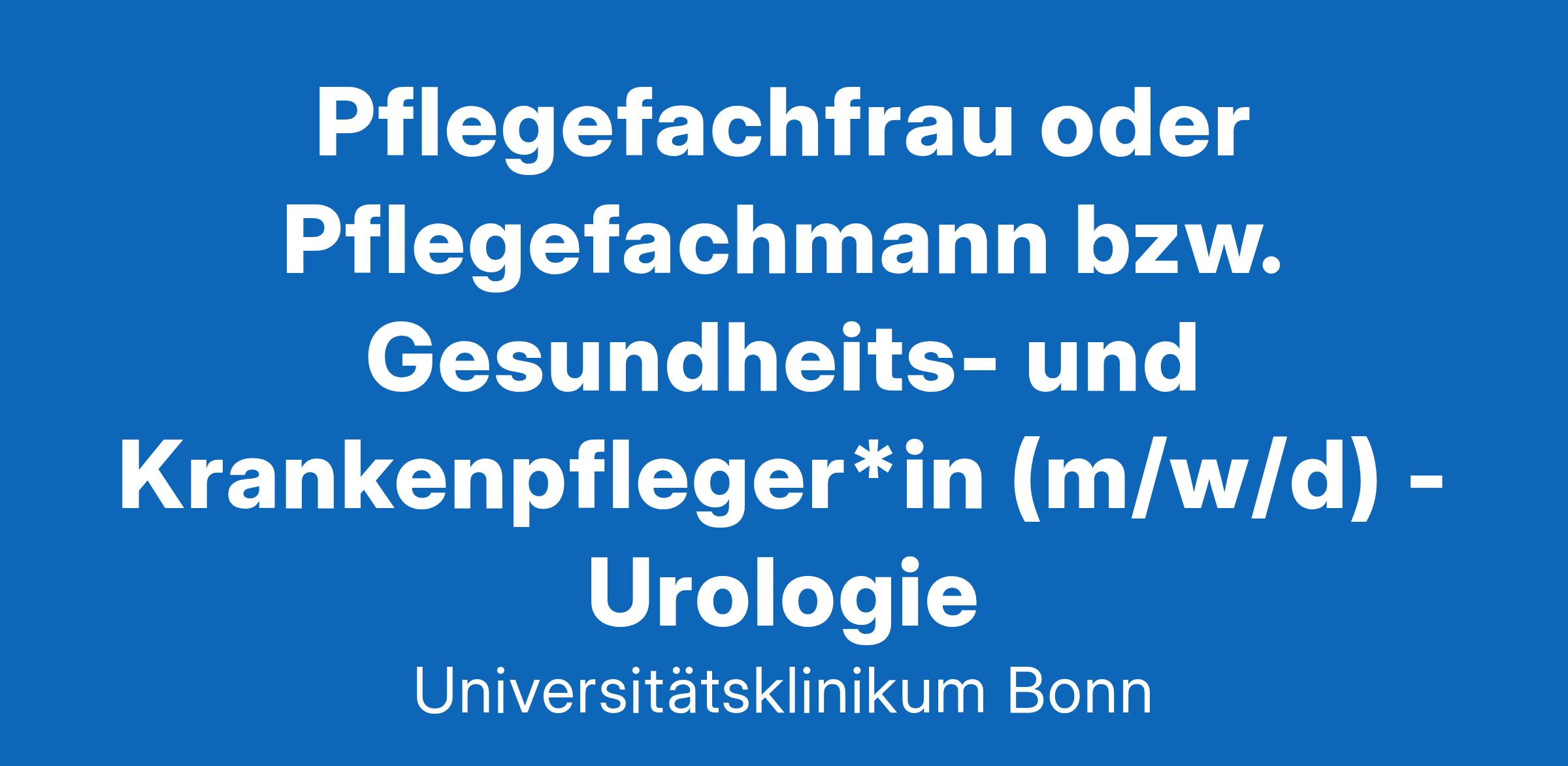 Im UKB werden pro Jahr etwa 500.000 Patient*innen betreut, es sind ca. 9.000 Mitarbeiter*innen beschäftigt und die Bilanzsumme beträgt 1,6 Mrd. Euro. Neben den über 3.300 Medizin- und Zahnmedizin-Studierenden werden pro Jahr weitere 585 Personen in zahlreichen Gesundheitsberufen ausgebildet. Das UKB steht im Wissenschafts-Ranking sowie in der Focus-Klinikliste auf Platz 1 unter den Universitätsklinika (UK) in NRW und weist den dritthöchsten Case Mix Index (Fallschweregrad) in Deutschland auf. Für die Station der Urologie (Station Witzel) suchen wir zum nächstmöglichen Zeitpunkt in Vollzeit (38,5 Std./Woche) oder Teilzeit unbefristet: Pflegefachfrau oder Pflegefachmann bzw. Gesundheits- und Krankenpfleger*in (m/w/d) Deine Aufgaben: Du betreust pflegerisch die zu behandelnden Patienten*innen auf der Station Du unterstützt und lebst die interdisziplinäre und berufsgruppenübergreifende Zusammenarbeit Du sicherst die Pflegequalität durch dein professionelles Pflegehandeln (gesetzliche Vorgaben, Hygiene) Du dokumentierst notwendige Daten sach- und fachgerecht Dein Profil: Eine abgeschlossene Ausbildung zur*m Pflegefachfrau oder Pflegefachmann, bzw. Gesundheits- und Krankenpfleger*in (m/w/d) Berufserfahrung im Bereich der Urologie wünschenswert – Berufsanfänger*Innen sind ebenso willkommen Spaß an der Arbeit sowie eine patienten- und ergebnisorientierte Arbeitsweise Ein ausgeprägtes interkulturelles und genderspezifisches Verständnis Einfühlungsvermögen und ein zugewandter Kommunikationsstil Wir bieten: Gestalte mit uns die Zukunft der Pflege! Wir sind der Arbeitgeber für alle, die mehr wollen. Mehr Abwechslung, mehr Herausforderung, mehr Perspektiven. Verantwortungsvoll und vielseitig: ein Arbeitsplatz mit großem Gestaltungsspielraum in einem kollegialen Team Sicher in der Zukunft: Entgelt nach TV-L Flexibel für Familien: flexible Arbeitszeitmodelle, Möglichkeit auf einen Platz in der Betriebskindertagesstätte und Angebote für Elternzeitrückkehrer*innen Vorsorgen für später: betriebliche Altersvorsorge Clever zur Arbeit: Möglichkeit eines zinslosen Darlehens zur Anschaffung eines E-Bikes Bildung nach Maß: geförderte Fort- und Weiterbildung Start mit System: strukturierte Einarbeitung Gesund am Arbeitsplatz: zahlreiche Angebote der Gesundheitsförderung, kostenlose Mitgliedschaft im UKB-Fitnessstudio Arbeitgeberleistungen: vergünstigte Angebote für Mitarbeiter*innen (Corporate Benefits) Wir setzen uns für Diversität und Chancengleichheit ein. Unser Ziel ist es, den Anteil von Frauen in Bereichen, in denen Frauen unterrepräsentiert sind, zu erhöhen und deren Karrieren besonders zu fördern. Wir fordern deshalb einschlägig qualifizierte Frauen nachdrücklich zur Bewerbung auf. Bewerbungen werden in Übereinstimmung mit dem Landesgleichstellungsgesetz behandelt. Die Bewerbung geeigneter Menschen mit nachgewiesener Schwerbehinderung und diesen gleichgestellter Personen ist besonders willkommen. Kontakt: Zögere nicht und sende deine Bewerbung bis zum 31.03.2025 an pflegedirektion[AT]ukbonn.de unter Angabe der Stellenanzeigen-Nr. ST-16019.