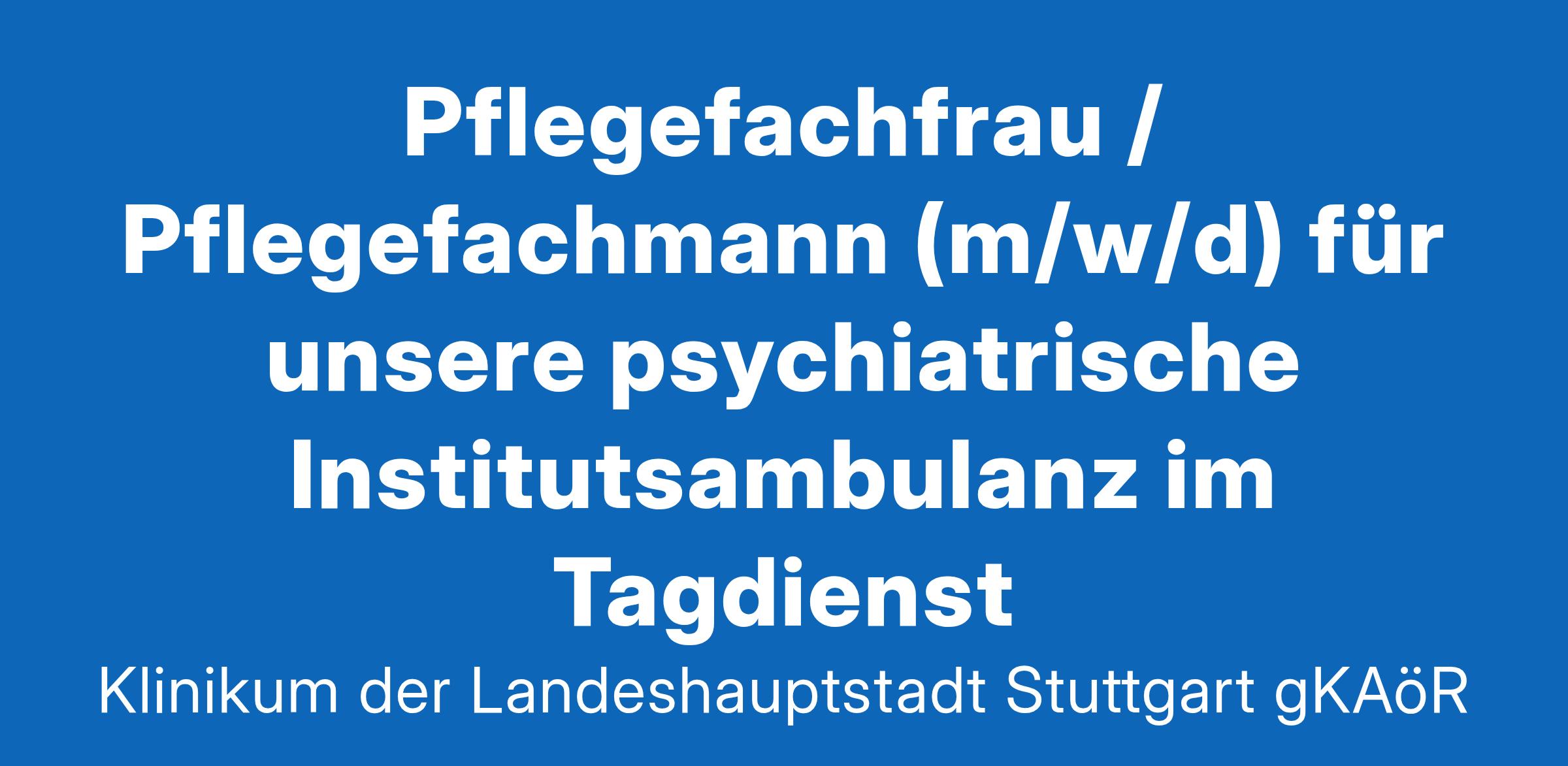 Klinikum Stuttgart - Entscheiden Sie sich für etwas Großes. Wir sind mit unseren drei Häusern „Katharinenhospital“, „Olgahospital“ und „Krankenhaus Bad Cannstatt“ das größte Klinikum in Baden-Württemberg. Über 9000 Mitarbeitende versorgen auf den Stationen, in Operationssälen, Funktionsbereichen die Patient:innen oder sind in Verwaltung, Technik oder IT für den reibungslosen Klinikbetrieb verantwortlich. An zwei attraktiv gelegenen Standorten in Stuttgart bieten wir Ihnen in über 50 Kliniken und Instituten als Maximalversorger und akademisches Lehrkrankenhaus der Universität Tübingen einen sinnstiftenden und zukunftsorientierten Arbeitsplatz. Dabei gilt immer: “Starkes Team. Starkes Klinikum. “Ihre Aufgaben: Für unsere psychiatrischen Institutsambulanzen suchen wir eine/n ein/e qualifizierte Pflegefachfrau / Pflegefachmann (m/w/d) oder Medizinische Fachangestellte/r (m/w/d), die die EKG Schreibung in unserem Zentrum übernimmt. Sie werden in den klinischen Fachbereichen eingearbeitet, um damit eine hohe Behandlungsqualität zu gewährleisten und erlangen somit eine ganzheitliche, multiprofessionelle Fachkompetenz.Zu Ihren Aufgaben zählen:EKG Schreibung der Geschützen StationenEKG Schreibung der offen geführten StationenOrganisation der EKG PlantafelAnsprechpartner und Verantwortlicher für die EKGs im ZSGSicherstellung einer den rechtlichen Anforderungen sowie leistungs- und abrechnungsrelevanten Dokumentation.Planung und Organisation des täglichen ArbeitsablaufesBeratung der Patient*innen und AngehörigenKoordination der Arbeitsabläufe und Prozessoptimierung (z.B. Behandlungsprozesse)Zusammenarbeit mit allen am Behandlungsprozess beteiligten Berufsgruppen im multiprofessionellen TeamWir erwarten:Sie haben eine abgeschlossene Ausbildung zur/m Pflegefachfrau / Pflegefachmann (m/w/d) oder Medizinische Fachangestellte/r (m/w/d) oder eine gleichwertige Ausbildung.Berufserfahrungen im EKG Schreibung sind wünschenswert.Fachkenntnisse im Bereich Psychiatrie sind wünschenswert.Sie besitzen EDV-Kenntnisse (MS-Office, SAP).Sie haben Organisationskompetenz und Verantwortungsbewusstsein.Sie verfügen über Flexibilität und eine rasche AuffassungsgabeSie besitzen umfassende soziale, kommunikative Kompetenzen, ein serviceorientiertes Auftreten und haben Freude am Beruf.Engagement und Teamfähigkeit sind für Sie selbstverständlich.Wir bieten:Ein verantwortungsvolles und vielseitiges AufgabengebietEine kooperative, vertrauensvolle Zusammenarbeit mit guter Arbeitsatmosphäre und Integration in ein multiprofessionelles und interprofessionelles TeamEin individuelles, strukturiertes und fachspezifisches EinarbeitungskonzeptUnterstützungsangebote zur Vereinbarkeit von Beruf und Familie: