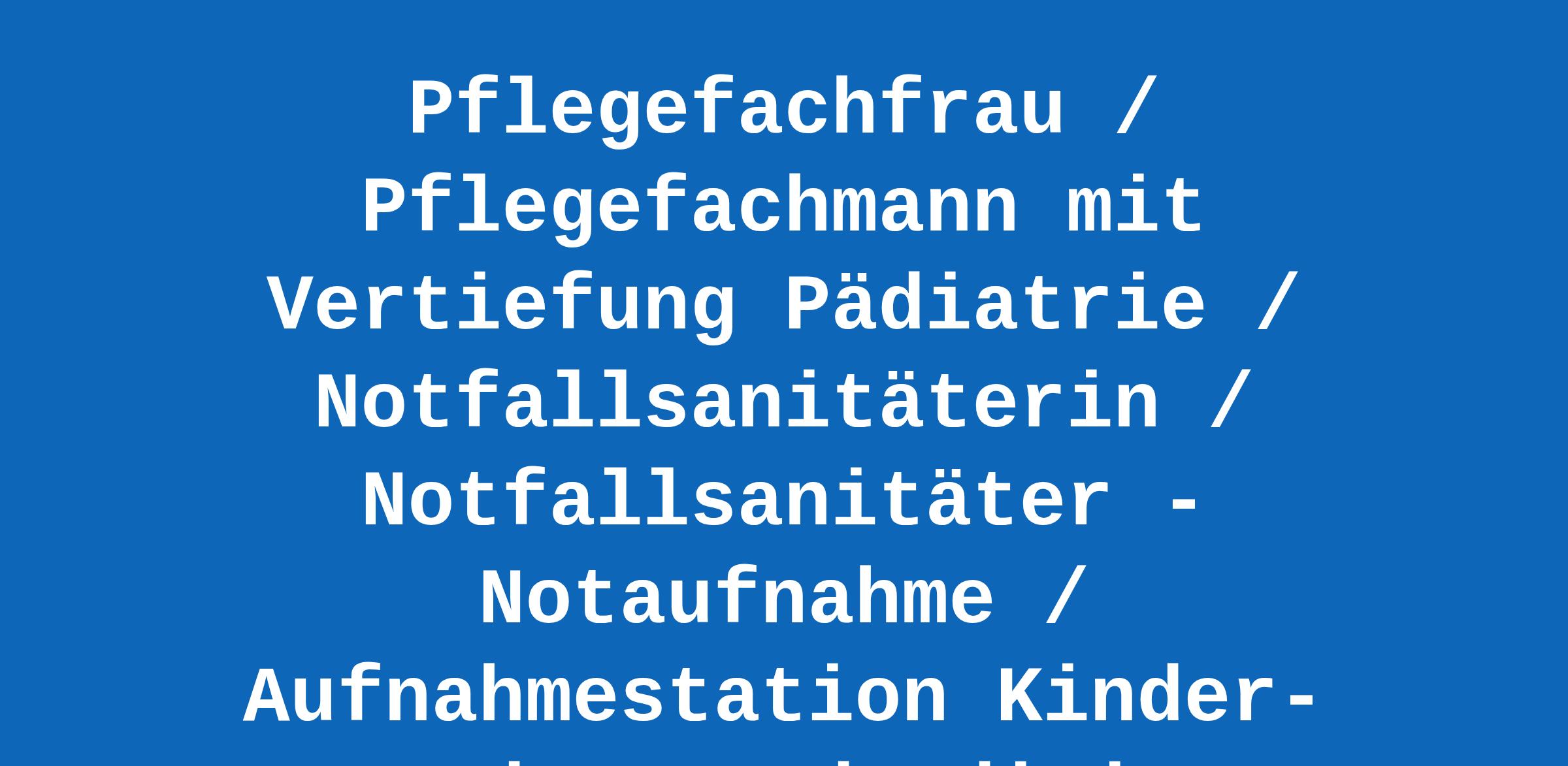 Pflegefachfrau / Pflegefachmann mit Vertiefung Pädiatrie / Notfallsanitäterin / Notfallsanitäter - Notaufnahme / Aufnahmestation Kinder- und Jugendmedizin