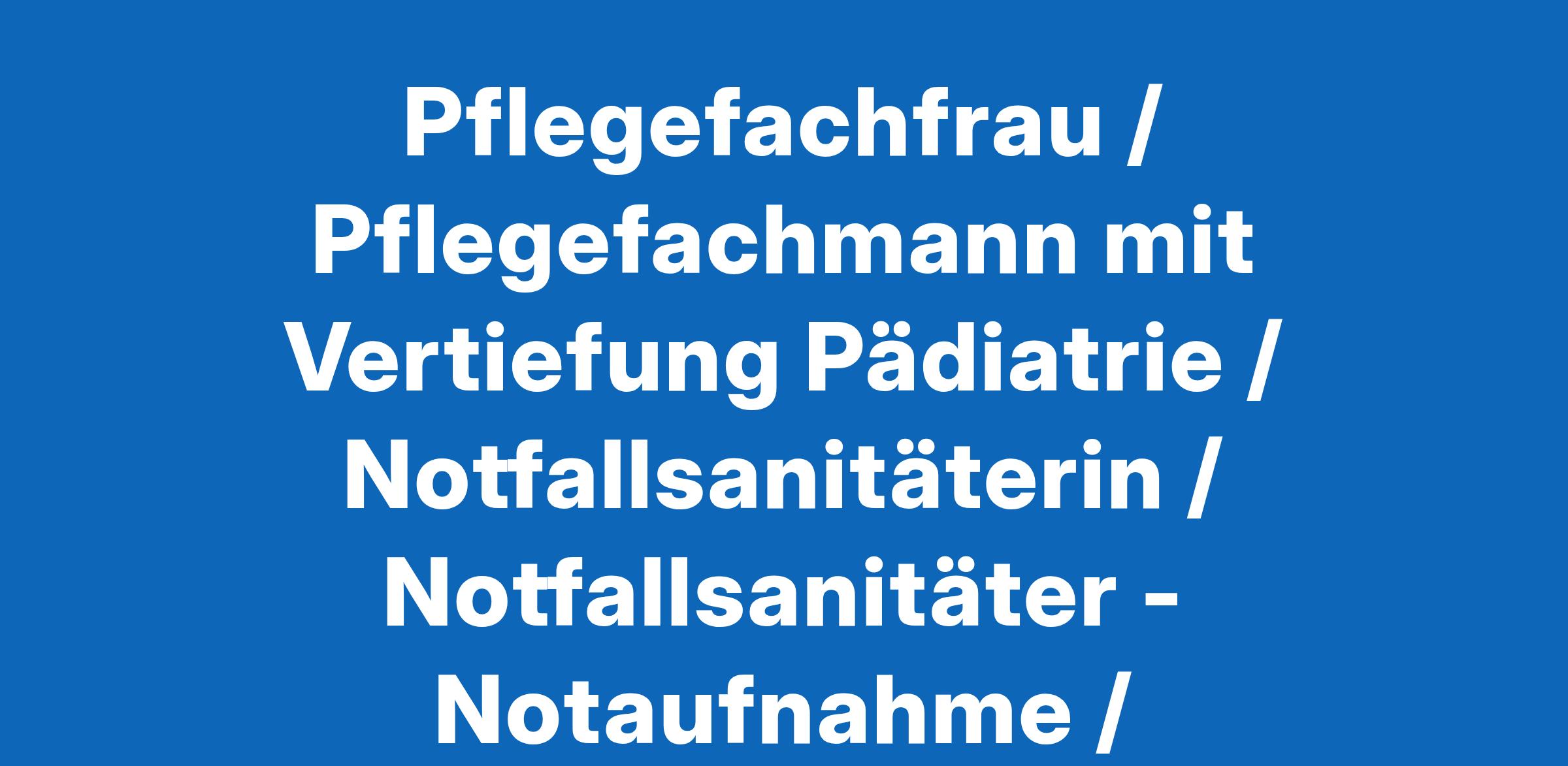 Pflegefachfrau / Pflegefachmann mit Vertiefung Pädiatrie / Notfallsanitäterin / Notfallsanitäter - Notaufnahme / Aufnahmestation Kinder- und Jugendmedizin