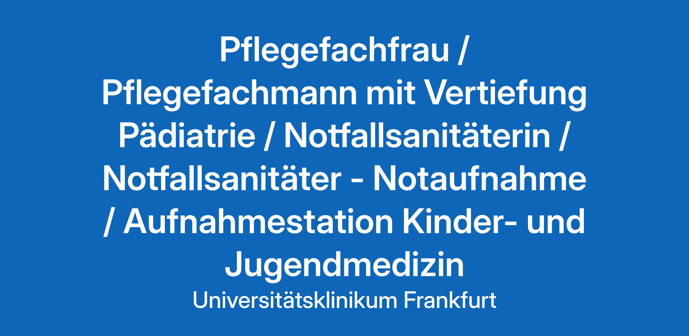 Pflegefachfrau / Pflegefachmann mit Vertiefung Pädiatrie / Notfallsanitäterin / Notfallsanitäter - Notaufnahme / Aufnahmestation Kinder- und Jugendmedizin