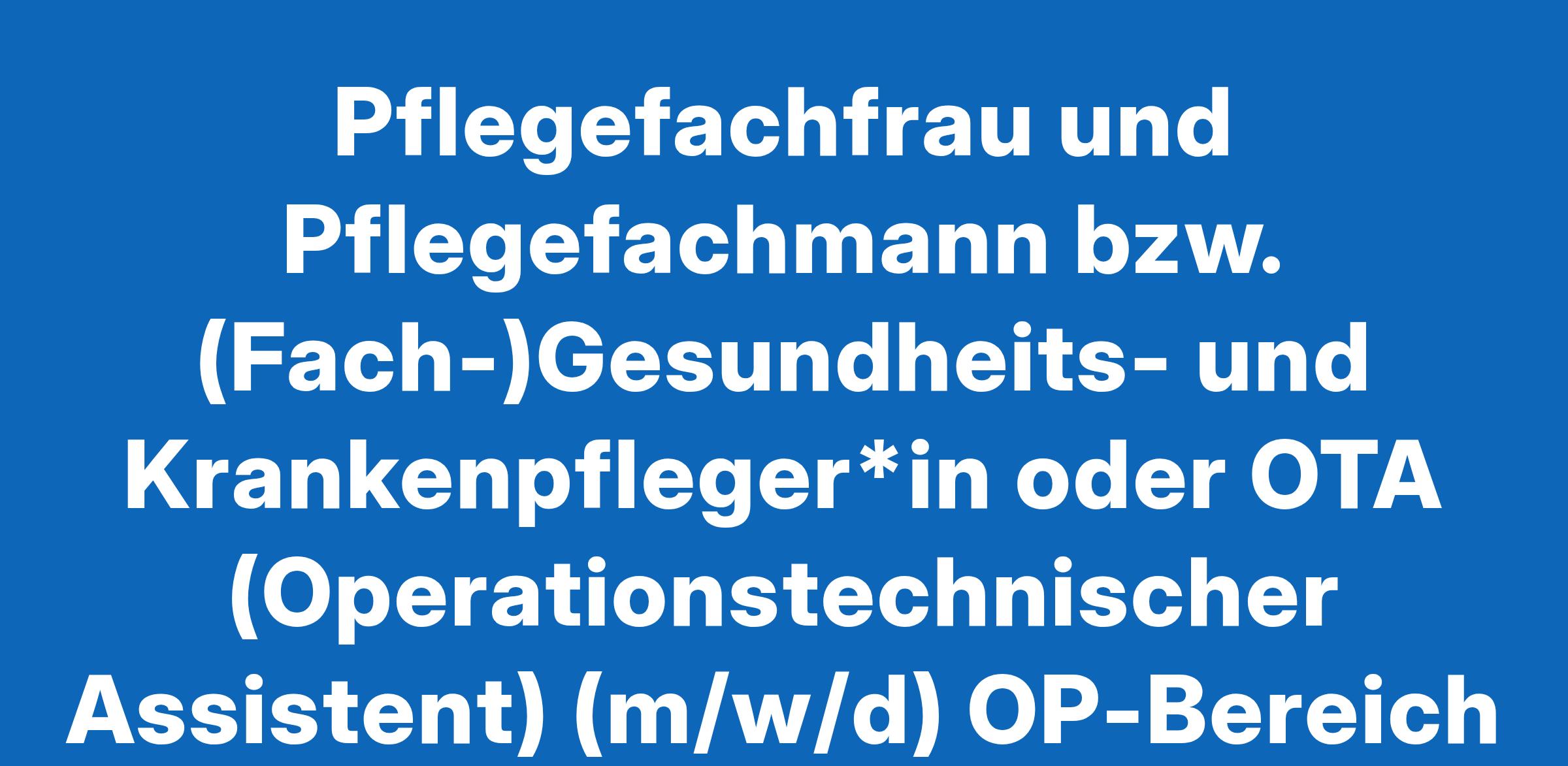 Pflegefachfrau und Pflegefachmann bzw. (Fach-)Gesundheits- und Krankenpfleger*in oder OTA (Operationstechnischer Assistent) (m/w/d) OP-Bereich Orthopädie und Unfallchirurgie