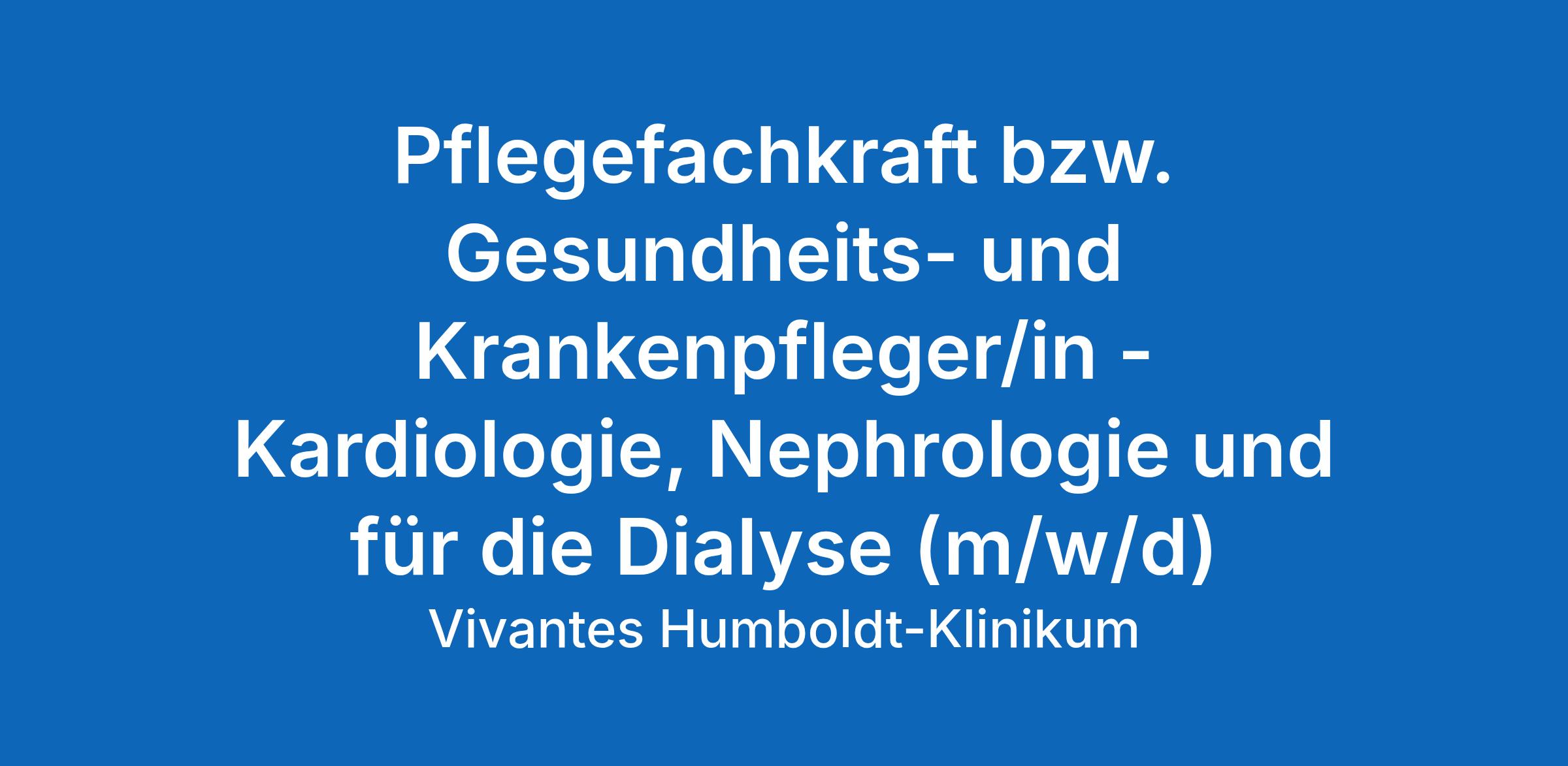 für Klinik Innere Medizin – Kardiologie, Nephrologie und für die Dialyse im Vivantes Humboldt-Klinikum zum nächstmöglichen Termin.