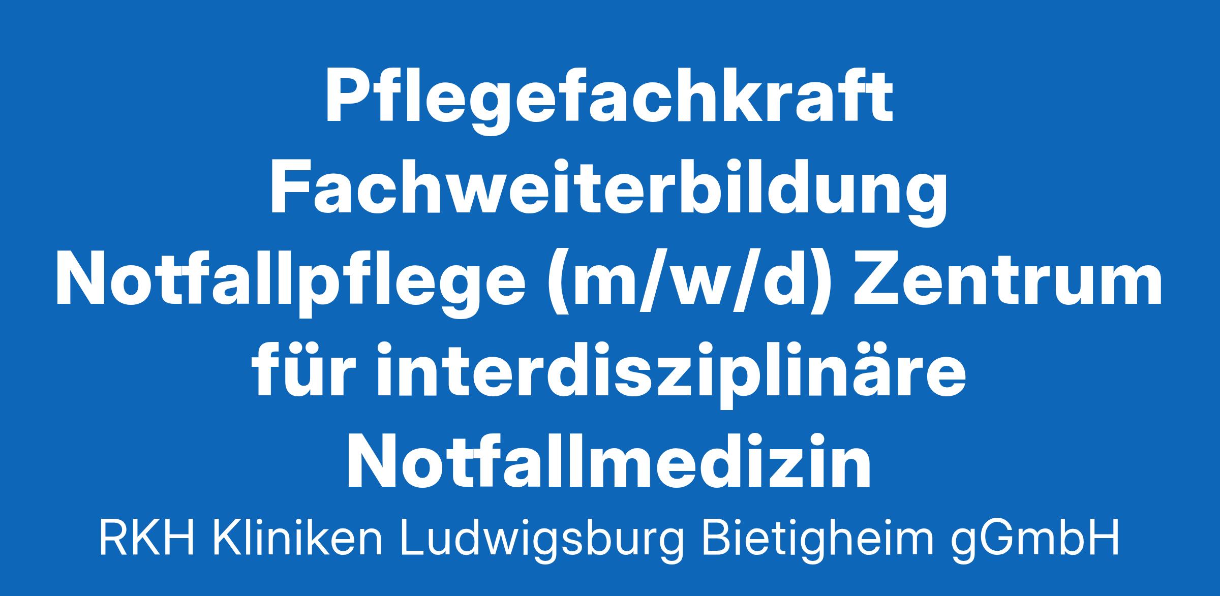 Meine Ziele. Klinik. Karriere. Leben. Klinik. Karriere. Leben. RKH Gesundheit – größter kommunaler Anbieter von Gesundheitsleistungen in Baden-Württemberg. Wir suchen ab sofort für unser Zentrum für interdisziplinäre Notfallmedizin der RKH Kliniken Ludwigsburg-Bietigheim gGmbH am Standort Ludwigsburg eine Pflegefachkraft mit Fachweiterbildung Notfallpflege (m/w/d) für das Zentrum für interdisziplinäre Notfallmedizin _ unbefristet in Teilzeit oder Vollzeit möglich bis zu 100 % Das sind wir: