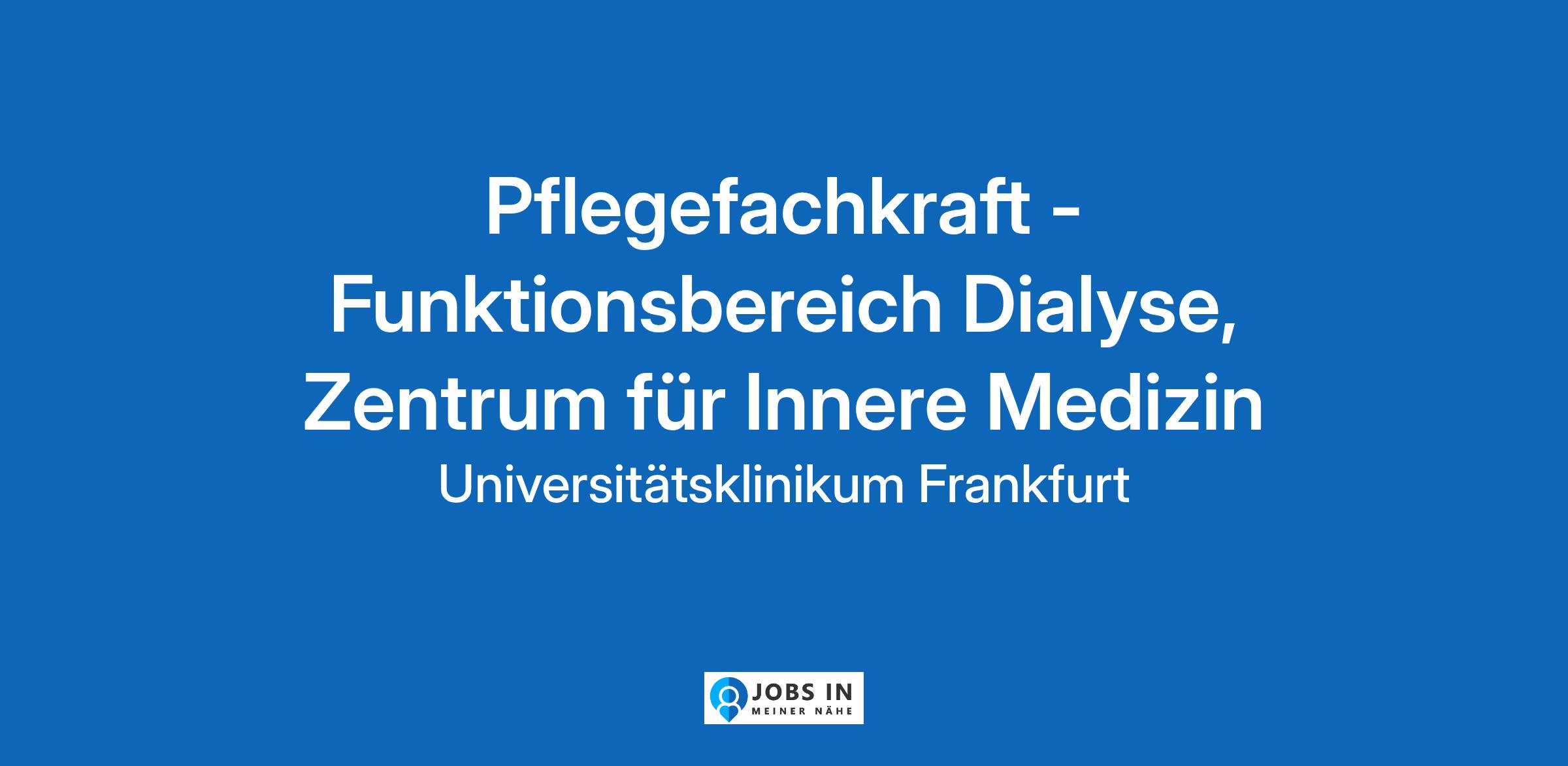 Die Position ist im Zentrum der Inneren Medizin zum nächstmöglichen Zeitpunkt zu besetzen. Wir suchen für die Medizinische Klinik 4 , Funktionsbereich Nephrologie - Dialyse mit 20 Dialyseplätzen Hämodialyse / Hämodiafiltration an der Universitätsmedizin Frankfurt am Main für die Station B4. Als Klinikdialyse bieten wir verschiedene Behandlungsverfahren an, wie Plasmaseparation, Leberersatztherapie, Hämodiafiltration, Immunadsorption, Bauchfelldialyse.