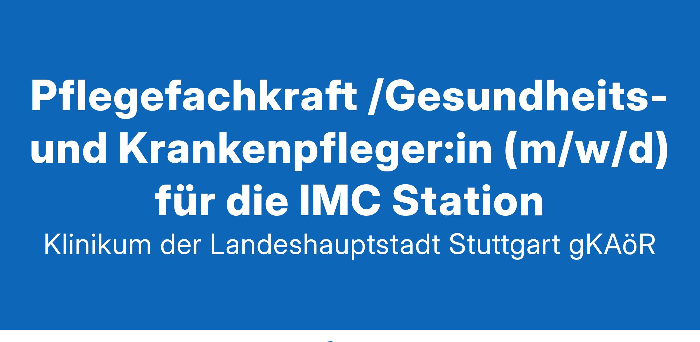 Klinikum Stuttgart - Entscheiden Sie sich für etwas Großes. Wir sind mit unseren drei Häusern „Katharinenhospital“, „Olgahospital“ und „Krankenhaus Bad Cannstatt“ das größte Klinikum in Baden-Württemberg. Über 9000 Mitarbeitende versorgen auf den Stationen, in Operationssälen, Funktionsbereichen die Patient:innen oder sind in Verwaltung, Technik oder IT für den reibungslosen Klinikbetrieb verantwortlich. An zwei attraktiv gelegenen Standorten in Stuttgart bieten wir Ihnen in über 50 Kliniken und Instituten als Maximalversorger und akademisches Lehrkrankenhaus der Universität Tübingen einen sinnstiftenden und zukunftsorientierten Arbeitsplatz. Dabei gilt immer: “Starkes Team. Starkes Klinikum. “Ihre Aufgaben: In unserem Zentrum für operative Medizin am Standort Mitte- Katharinenhospital ist auf der Interdisziplinären operativen IMC eine Teil- / Vollzeit-Stelle zum nächstmöglichen Zeitpunkt zu besetzen. Die IMC Station ist mit 16 Planbetten ausgewiesen und versorgt schwerpunktmäßig Patient:innen, der Allgemein- und Viszeralchirurgie, der Unfall- und Gefäßchirurgie und der Orthopädie.