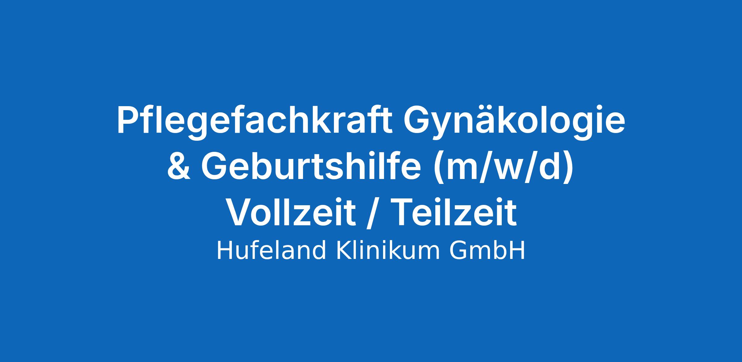 Pflegefachkraft Gynäkologie & Geburtshilfe (m/w/d) Vollzeit / Teilzeit
