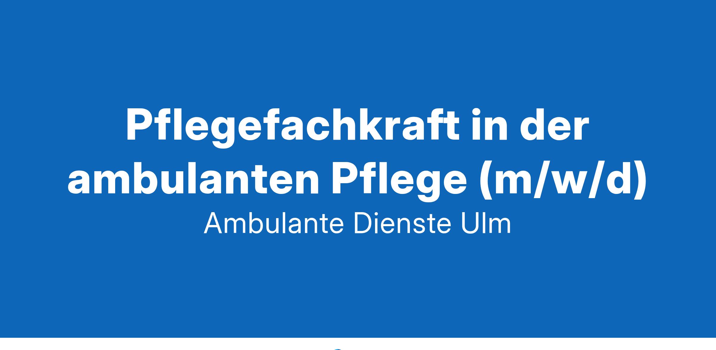 Sie sind auf der Suche nach einem kleinen Team, das sich gemeinsam mit Ihnen stetig weiterentwickelt? Sie legen Wert auf eine offene Fehlerkultur – denn niemand ist perfekt? Zusätzlich wünschen Sie sich Entscheidungsfindung auf Augenhöhe und moderne Strukturen mit familiärer Charleston Atmosphäre? Dann sind Sie in unseren Ambulanten Diensten in Ulm an der richtigen Adresse. Im direkten Stadtgebiet von Ulm und Neu-Ulm sowie im nahegelegenen Umland betreuen wir pflegebedürftige Menschen in den eigenen vier Wänden. Pflegefachkraft in der ambulanten Pflege (m/w/d) Ihre neuen Aufgaben Echt was bewirken Du stellst eine individuelle Grund- und Behandlungspflege sicher Du bist zuständig für die Planung, Umsetzung und Steuerung des Pflegeprozesses Du dokumentierst und beurteilst fortlaufend und nachvollziehbar die Durchführung und Wirkung der Pflegemaßnahmen Du stellst die Qualitätsstandards sicher und arbeitest bei den kontinuierlichen Verbesserungsprozessen mit Du bist Ansprechpartner für Kunden/innen und Angehörige Das bringen Sie mit Mach Karriere als Mensch Du hast eine staatlich anerkannte Ausbildung zur/zum Pflegefachfrau/-mann, Gesundheits- und Krankenschwester/-pfleger, Altenpfleger/in oder Gesundheits- und Kinderkrankenschwester/-pfleger Du hast Freude am Umgang mit pflegebedürftigen Menschen Mit deiner empathischen und verantwortungsbewussten Art verbreitest du ein positives Gefühl bei den Kunden/innen Du bist bereit, an Fortbildungs- und Qualifizierungsmaßnahmen teilzunehmen Unsere Leistungen Garantiert statt gut gemeint 1.000,- Euro Willkommensbonus* Bikeleasing - Fahrrad per Gehaltsumwandlung leasen und von Steuervorteilen profitieren** Leistungsgerechte Vergütung nach Berufserfahrung und Qualifikation Überdurchschnittliche Zeitzuschläge für Nacht, Sonn- und Feiertage Verlässliche und frühzeitige Dienstplanung Zuschuss zur betrieblichen Altersvorsorge (baV) Strukturierte Einarbeitung mit kontinuierlicher Begleitung Interne und externe Fort- und Weiterbildungsmöglichkeiten Ein Prämiensystem für das Werben von neuen Mitarbeitern (m/w/d) * Die Geldprämie ist steuer- und sozialversicherungspflichtig, nur für Voll- und Teilzeitbeschäftigung ** Nur für Voll- und Teilzeitbeschäftigte die den gesetzlichen und innerbetrieblichen Voraussetzungen entsprechen Ambulante Dienste Ulm