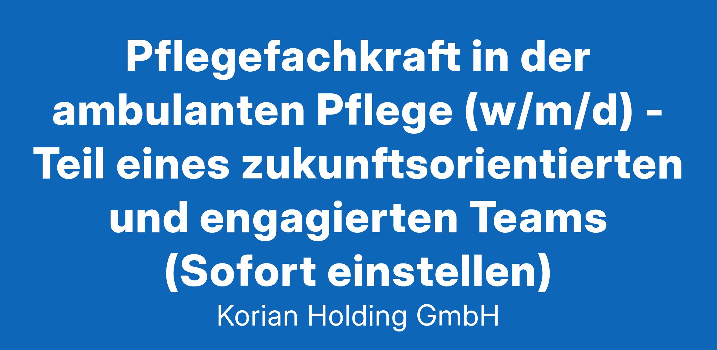 Aufgaben Pflegefachkraft in der ambulanten Pflege (w/m/d): Zuhause bestens umsorgt Bist Du auf der Suche nach einer besonderen Aufgabe? Einer Tätigkeit, die nicht nur den Alltag anderer Menschen bereichert, sondern auch Dein eigenes Leben sinnvoll gestaltet? Dann haben wir genau das Richtige für Dich: Werde Teil unseres Teams als examinierte Pflegefachkraft im ambulanten Dienst (w/m/d) und gestalte gemeinsam mit uns die Zukunft der mobilen Pflege. Deine Aufgaben als ambulante Altenpfleger:in (w/m/d) bei uns Bei Korian findest Du nicht nur einen Job, sondern eine Berufung. Werde Teil unseres Teams als Pflegefachkraft im ambulanten Pflegedienst (w/m/d) und gestalte aktiv das Leben unserer Kund:innen mit. Durch verantwortungsbewussten und wertschätzenden Umgang gewinnst Du das nötige Vertrauen von Kund:innen und Teamkollegen Dank Deines persönlichen Einsatzes bereicherst Du das Leben unserer Kunden:innen und bist Teil von etwas ganz Großen Neben routinierten Tätigkeiten wie Medikamentenausgabe, Pflegetätigkeiten und digitaler Dokumentation sorgt der Kontakt mit Angehörigen, Ärzten sowie Kollegen für Abwechslung Aufgrund des qualitativen Anspruchs an Dich selbst wirst Du Hilfskräfte, Auszubildende und Praktikanten hervorragend fachlich sowie menschlich anleiten Als Experte (w/m/d) in Deinem Gebiet bekommst Du bei uns die Möglichkeit, Dich kreativ in die Alltagsgestaltung einzubringen