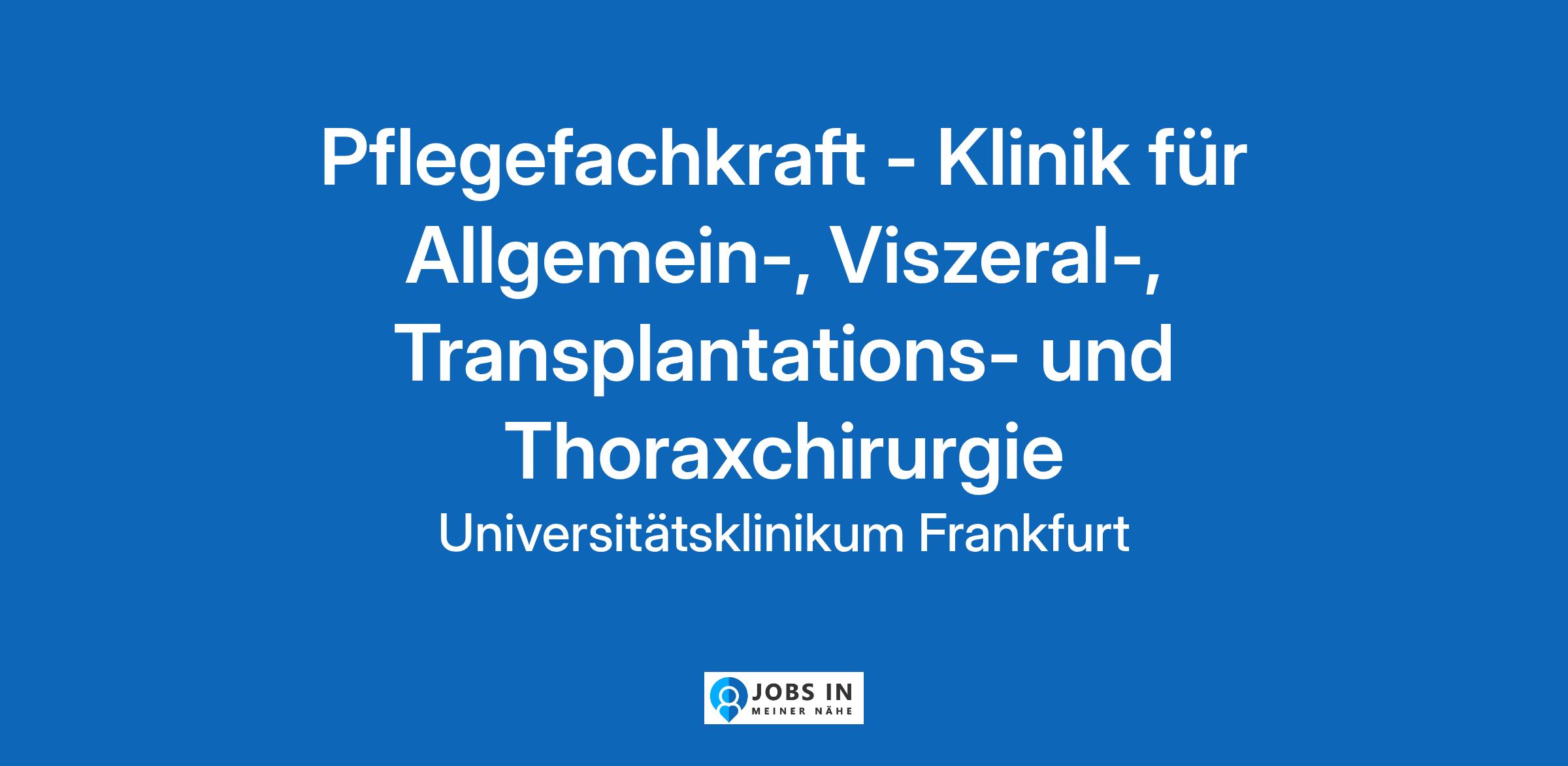 Die Position ist innerhalb der Klinik für Allgemein-, Viszeral-, Transplantations- und Thoraxchirurgie der Universitätsmedizin Frankfurt zum nächstmöglichen Zeitpunkt besetzen.