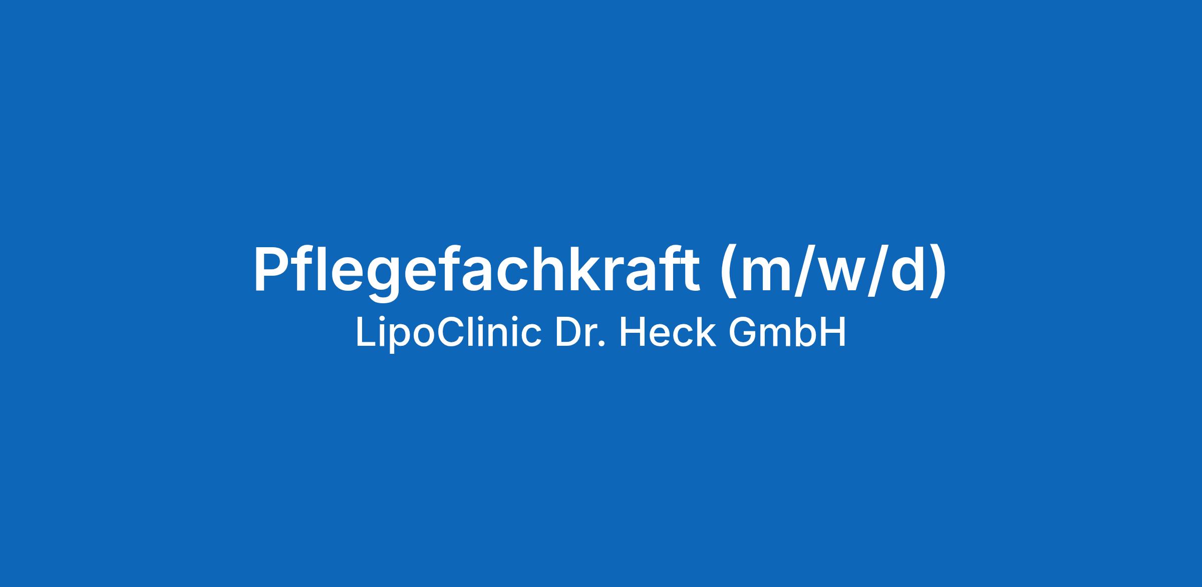Wir suchen Sie als Pflegefachkraft (m/w/d) für die LipoClinic Dr. Heck an dem Standort in Hamburg.
