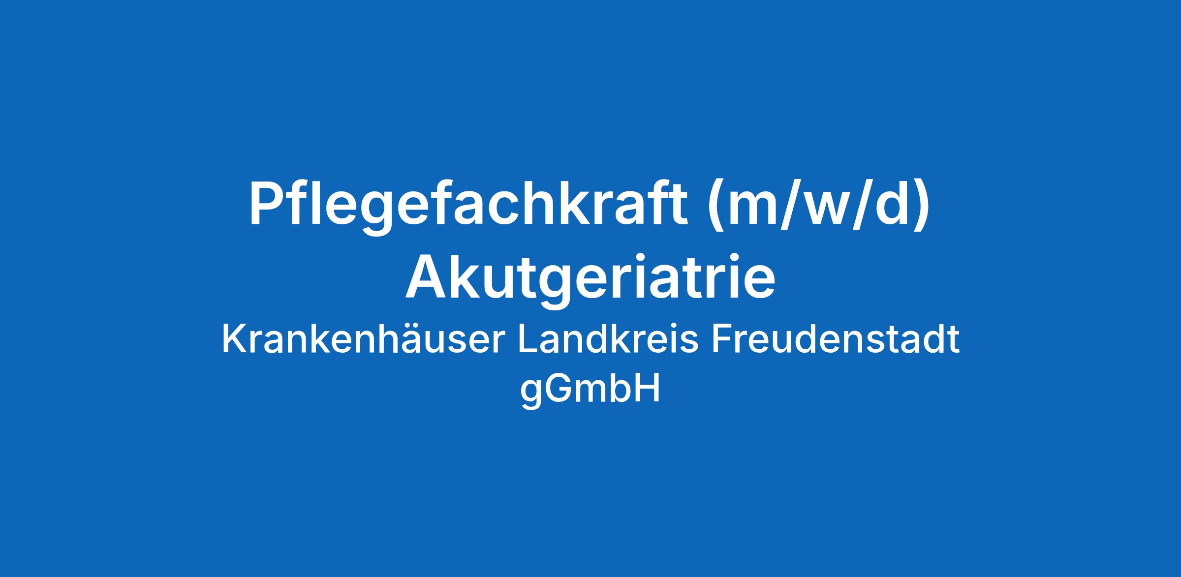 Für den Standort Freudenstadt suchen wir für die Akutgeriatrie zum nächstmöglichen Zeitpunkt eine
