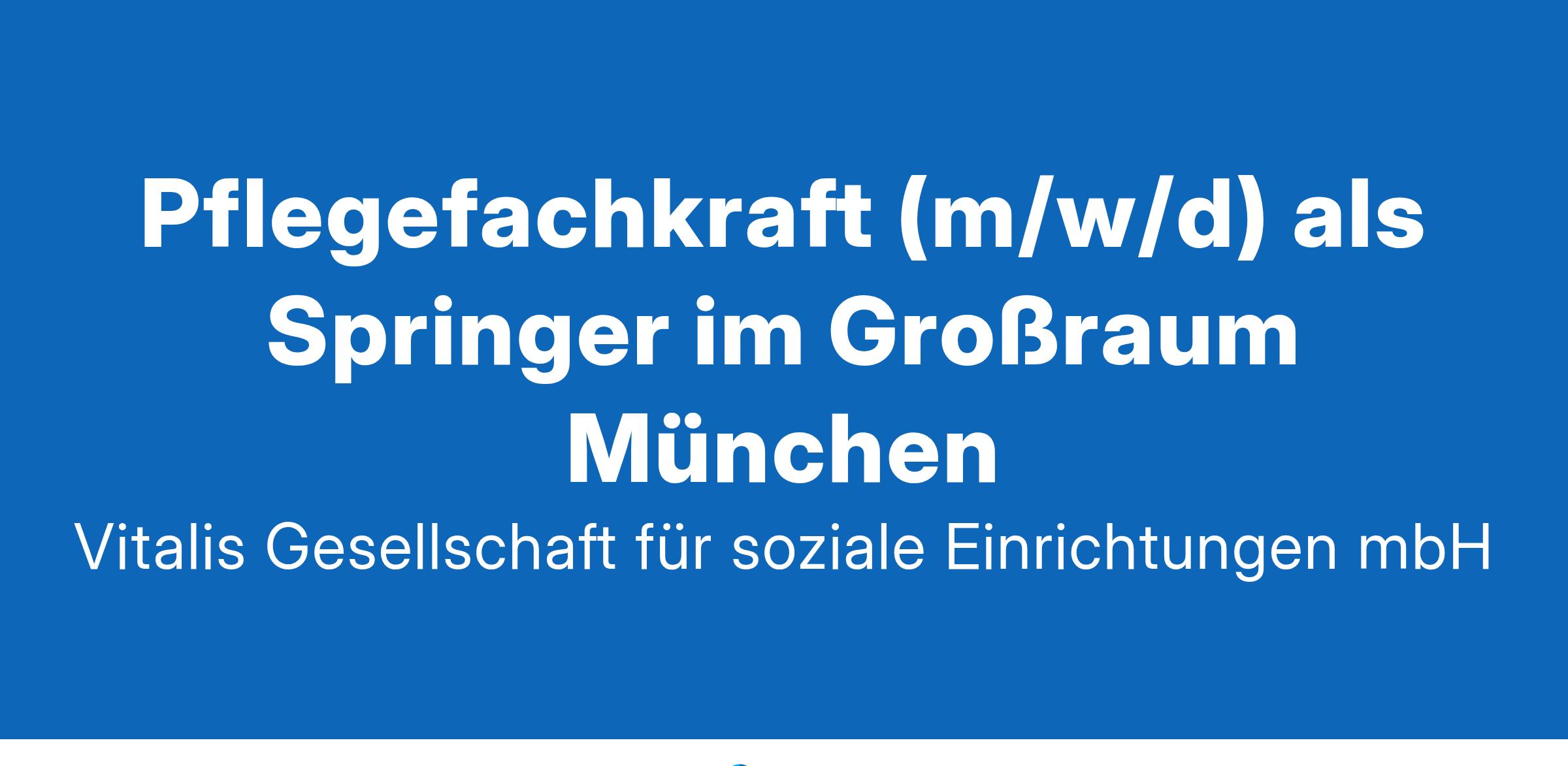 Pflegefachkraft (m/w/d) als Springer im Großraum MünchenAmselstraße 1, 85356 FreisingVoll- oder TeilzeitBerufseinsteiger & BerufserfahreneSpring' mit uns für die Pflege! In unserem Springerpool arbeitest du an unterschiedlichen Standorten unserer Gruppe im Großraum München und Umgebung und profitierst gleichzeitig von festen Einsätzen und zahlreichen Extras.