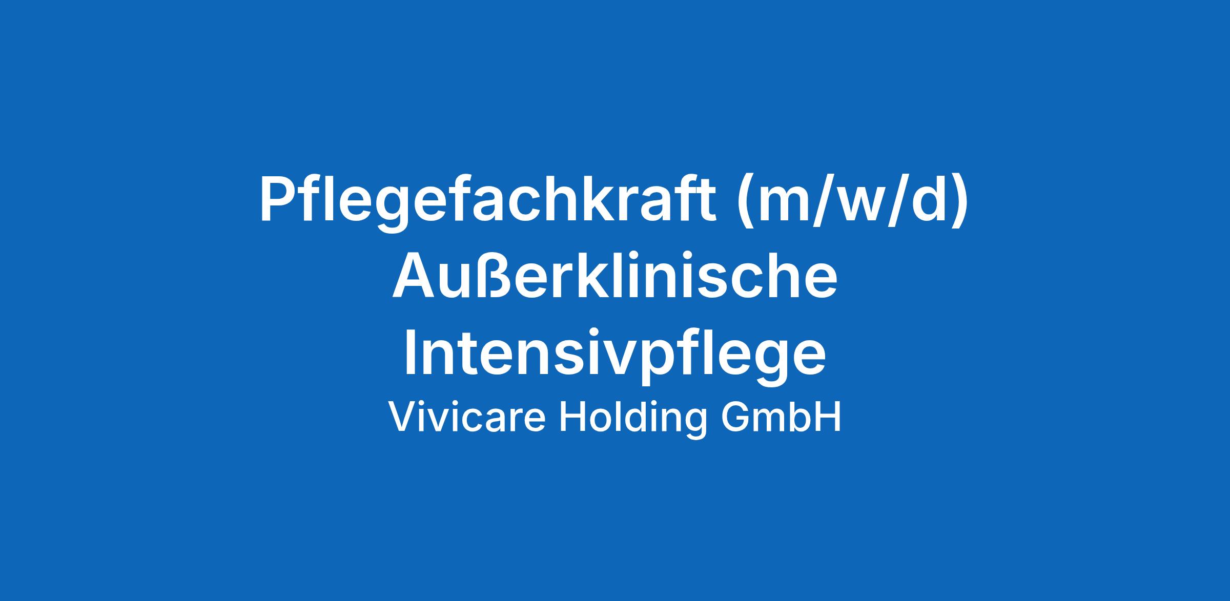 Die VIVICARE GmbH bietet ihren Patienten die beste, umfänglichste Intensivpflege im Raum München. Wir suchen für unsere Wohngruppe in Giesing Pflegefachkräfte in Voll- und Teilzeit.