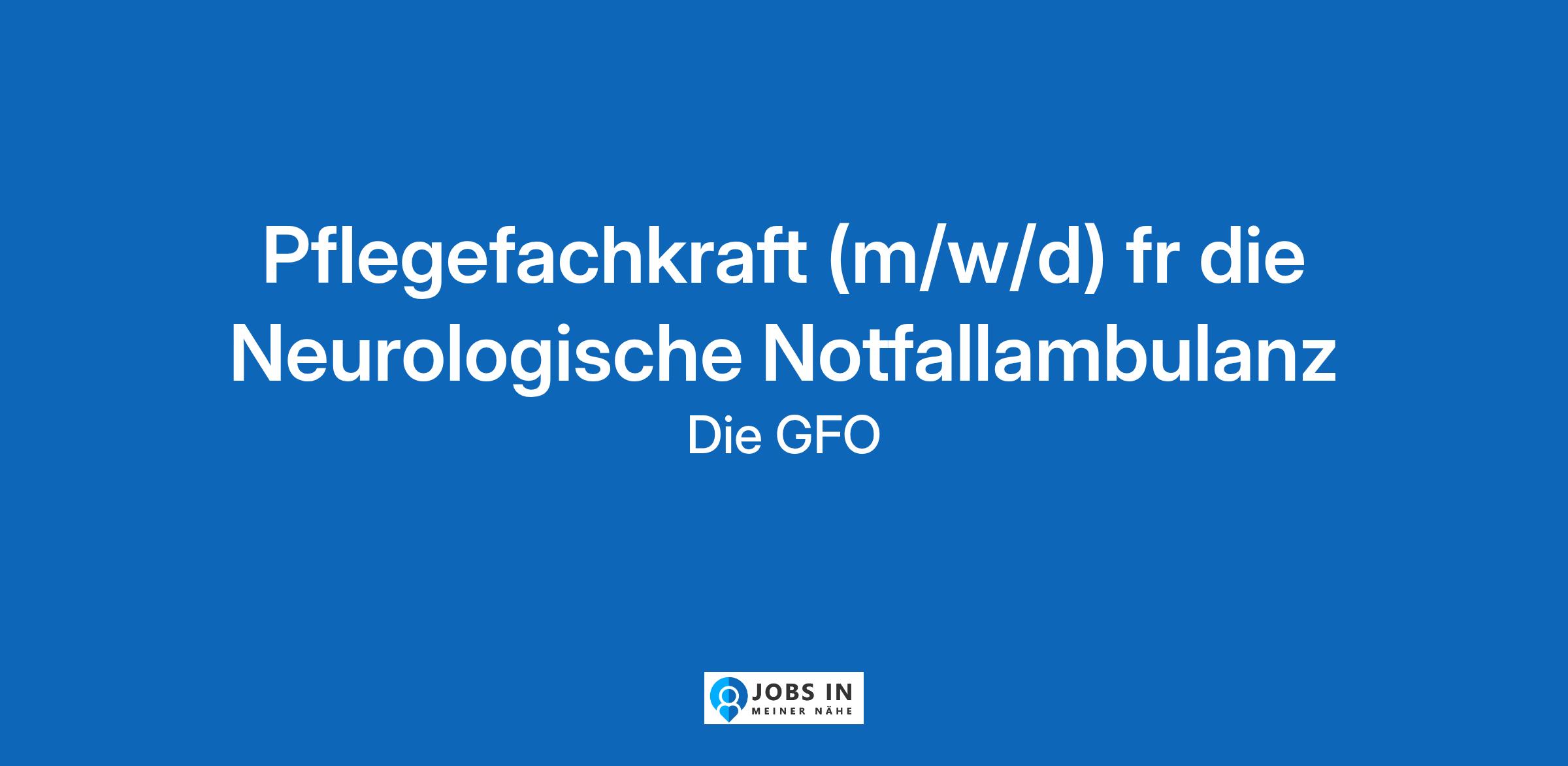 Die GFO Kliniken Rhein-Berg suchen zum nchstmglichen Zeitpunkt eine Pflegefachkraft (m/w/d) fr unsere Neurologische Notfallambulanz am Marien-Krankenhaus Bergisch Gladbach.