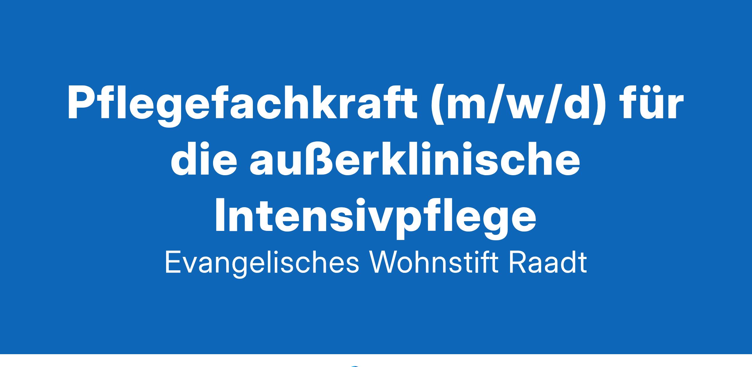 Karriere im Evangelischen Wohnstift RaadtDas Evangelische Wohnstift Raadt ist eine moderne Einrichtung der stationären Altenhilfe. Mehr als 100 Bewohnerinnen und Bewohner mit verschiedenen Pflegegraden wohnen in drei Wohnbereichen. Seit dem Jahr 2020 befindet sich die Außerklinische Intensivpflege in einem separaten Gebäude, ein Schwerpunktversorgungsbereich für Menschen im Wachkoma und/oder mit (Heim-)Beatmung. Unsere Einrichtung zeichnet sich durch seine Verwurzelung im lokalen Umfeld, die Vielfalt der Bewohnerinnen und Bewohner und unsere gewachsene Teamkultur aus. Wir sind fest im nachbarschaftlichen Umfeld verankert. Die Angehörigen unserer Bewohnerinnen und Bewohner sind bei uns stets gern gesehen und werden aktiv in unseren Alltag eingebunden.Zum nächstmöglichen Zeitpunkt suchen wir zur Verstärkung unseres Teams in der außerklinischen Intensivpflege einePflegefachkraft (m⁠/⁠w⁠/⁠d)in Voll- oder Teilzeit.Wir begleiten unsere Bewohnerinnen und Bewohner fürsorglich und mit hoher pflegerischer Kompetenz, gehen mit Einfühlungsvermögen auf persönliche Wünsche und Bedürfnisse unserer Bewohnerinnen und Bewohner ein und schaffen gleichzeitig vielfältige Möglichkeiten für Unterhaltung und familiäre Gemeinsamkeit. Die beruflichen Leistungen unserer Kolleginnen und Kollegen sind uns ebenso wichtig wie ihre persönlichen Lebenslagen und individuellen Perspektiven. Unsere regelmäßigen Fortbildungs- und Qualifizierungsangebote tragen zur eigenen Weiterentwicklung bei. Wo es erforderlich und möglich ist, passen wir Arbeitsmodelle an individuelle Bedürfnisse an und bieten Unterstützung, damit berufliche und private Belange harmonisch zusammengeführt werden können. Jedes Mitglied unseres Teams kann sich auf eine Atmosphäre des Respekts verlassen.Dein AufgabengebietGrund- und Behandlungspflege inkl. Versorgung und Übernahme der BezugspflegeBetreuung von Wachkomapatienten unter Nutzung von unterschiedlichen medizinisch-technischen Geräten, wie z.B. BGA, Antidekubitussystemen, Ernährungspumpen, Absauggeräten, OxatorenSteuerung und Überwachung von Pflege- und BetreuungsprozessenZielfestlegung und Planung der Maßnahmen im Pflege- und Betreuungsprozess, einschließlich der Kontrolle und Auswertung der Pflege- und BetreuungsqualitätInformation und Beratung von Bewohnern und AngehörigenDurchführung der elektronischen Pflegeplanung und -dokumentationDas bringst du mitErfolgreich abgeschlossene Ausbildung in der Gesundheits- und Krankenpflege oder AltenpflegeAbgeschlossene Weiterbildung im Schwerpunktbereich "Wachkoma" oder die Bereitschaft diese zu absolvierenErfahrung in der außerklinischen Intensivpflege (z.B. Wachkoma oder Heimbeatmung) wünschenswertFreude im Umgang mit pflegebedürftigen MenschenDie Fähigkeit zur kooperativen Mitarbeit in einem kreativen Team bei klar strukturierten RahmenbedingungenGute kommunikative und soziale FähigkeitenBereitschaft zum SchichtdienstDas erwartet dich bei unsBewohnerinnen und Bewohner, die dich willkommen heißenDynamische Teammitglieder, die füreinander einspringenOffenheit für deine Ideen und AnregungenAttraktive, tarifgebundene Vergütung nach BAT-KFZusatzvergütungen wie Weihnachtsgeld, Wochenend- und FeiertagszuschlägeBetriebliche Altersvorsorge durch die kirchliche Zusatzversorgungskasse (KZVK)Aktive Gesundheitsförderung (Sport & Entspannung, Gesundheitscheck u. v. m.)Arbeitgeberfinanzierte Fortbildungen und Unterstützung in deiner beruflichen und persönlichen Weiterentwicklung, auch in unserem hauseigenen Ategris BildungsinstitutViele Mitarbeitervorteile und Rabatte (Corporate Benefits, Kultur & Musik u. v. m.)Arbeitgeberunterstütztes Fahrrad-LeasingHaben wir dein Interesse geweckt?Dann nichts wie los – klicke direkt auf den "Jetzt Bewerben"-Button und überzeuge uns von deinen Fähigkeiten!