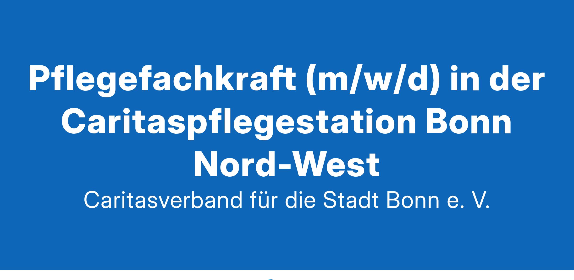 Der Caritasverband für die Stadt Bonn e.V. ist der örtliche Wohlfahrtsverband der Katholischen Kirche. Mit mehr als 1.100 Mitarbeitenden bieten wir nach unserem Motto „Not sehen und handeln“ Unterstützung für Menschen in den Bereichen Kinder, Jugend und Familie, Integration und Rehabilitation sowie Leben und Wohnen in Alter und Krankheit. In unseren über 60 unterschiedlichen Einrichtungen und Diensten begleiten wir die Menschen je nach persönlicher Lebenssituation. Als Partner der Stadtgesellschaft fördern wir aktiv das soziale Miteinander und die gesellschaftliche Teilhabe für alle Menschen in der Bundesstadt Bonn.Zum Bereich Leben und Wohnen in Alter und Krankheit zählen die vier ambulanten Caritas-Pflegestationen, die Tagespflege, sowie die drei stationären Alten- und Pflegeheime. Darüber hinaus bieten wir Beratungs- und Begegnungsangebote für Senior*innen, Begleitetes Service Wohnen und weitere Dienstleistungen in Hauswirtschaft und Demenzbegleitung an.Für unsere Pflegestation in Bonn Nord-West suchen wir ab sofort einePflegefachkraft (m/w/d) in der Caritaspflegestation Bonn Nord-Westin Voll- oder Teilzeit.