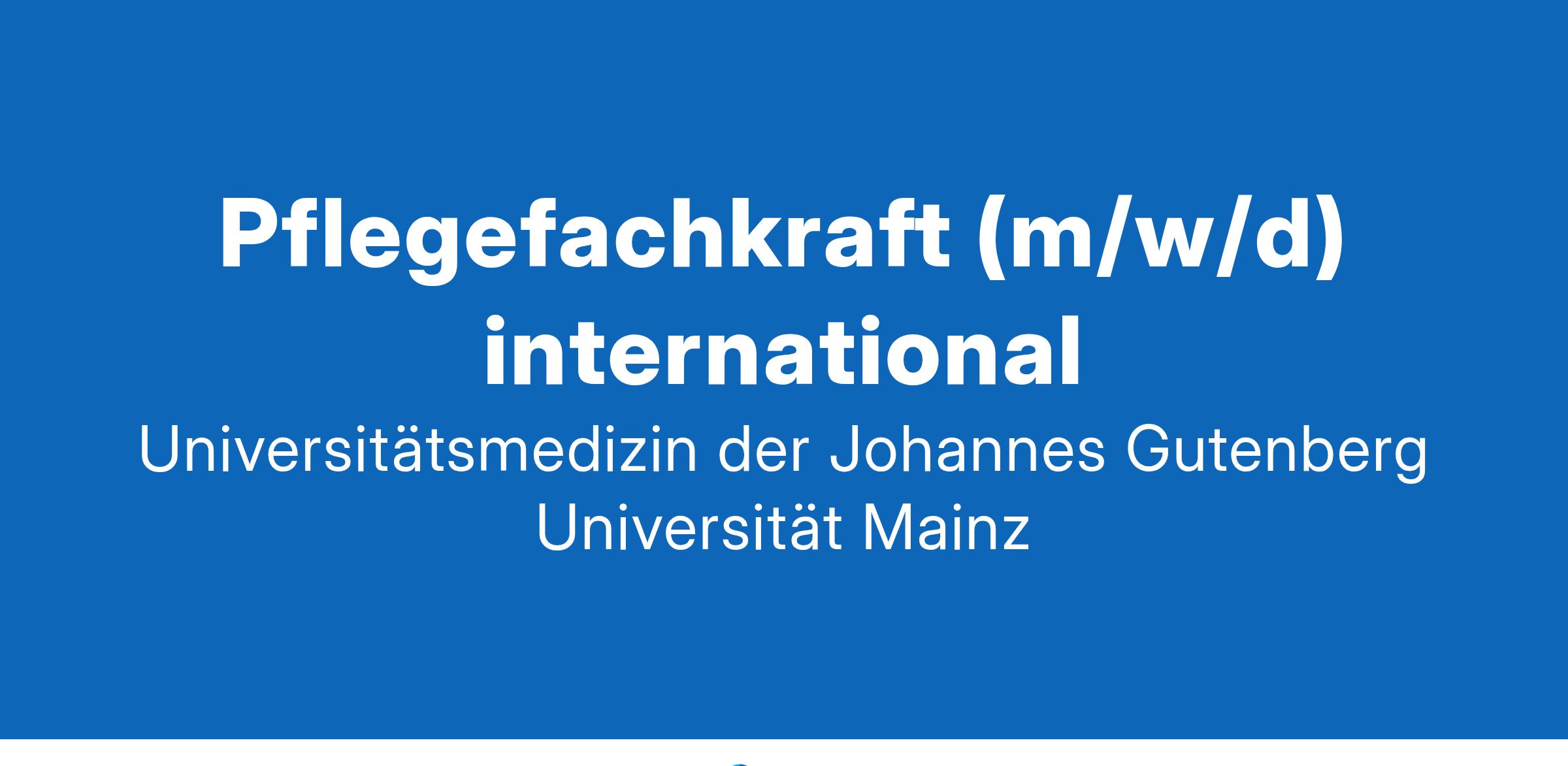möchten an der Universitätsmedizin Mainz arbeiten? Dann freuen wir uns auf Ihre Bewerbung!Pflegefachkräfte (m/w/d) internationalWir bieten Ihnen:Unterstützung und Begleitung bei der Anerkennung