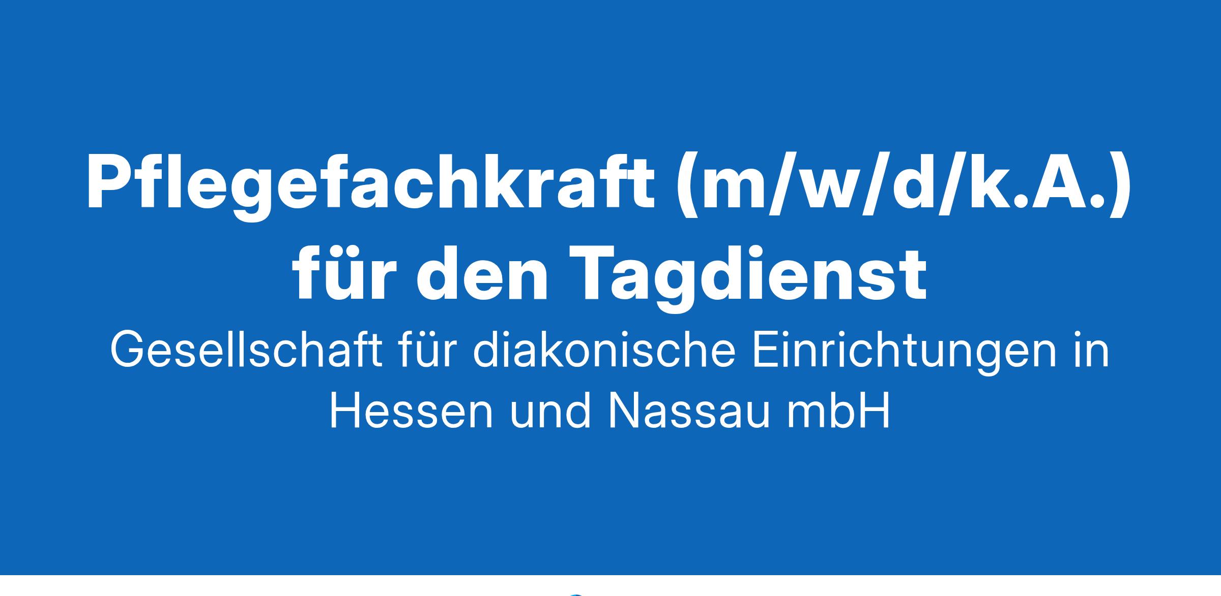 Pflegefachkraft (m/w/d/k.A.) für den TagdienstSeit bald 50 Jahren ist die Gesellschaft für diakonische Einrichtungen für Seniorinnen und Senioren im Einsatz. Unser Angebot umfasst stationäre und ambulante Pflege und Betreuung, Service Wohnen, Tagespflege sowie einen ambulanten Hospizdienst an insgesamt 25 Standorten mit rund 2.000 Mitarbeitenden.