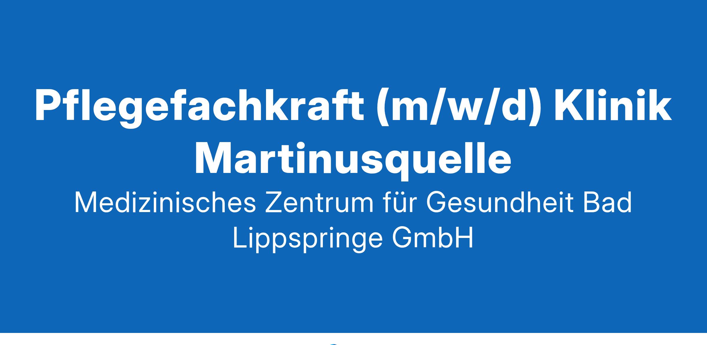 Pflegefachkraft (m/w/d) Klinik MartinusquelleDas Medizinische Zentrum für Gesundheit in Bad Lippspringe ist ein leistungsstarker Klinikverbund mit vielfältigen Angeboten in der Prävention, Akutmedizin, Rehabilitation und Pflege mit rund 1.200 Beschäftigten und 200 Auszubildenden.