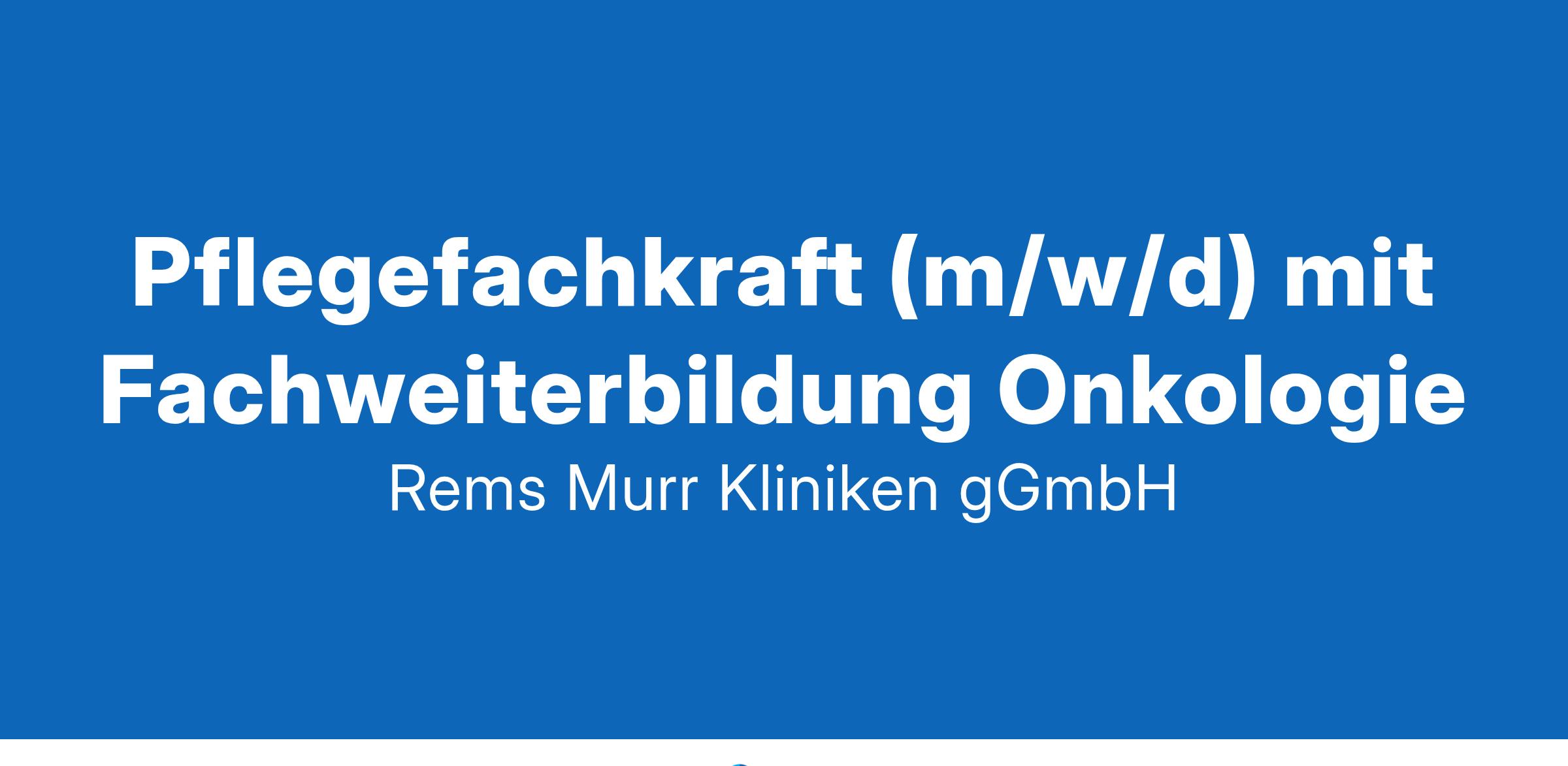 Intension: Pflege!Wir suchen zum 01.12.2024 in Vollzeit oder Teilzeit (mind. 60 %) für unser Klinikum Winnenden einePflegefachkraft (m/w/d) mit Fachweiterbildung Onkologiefür unsere onkologische/hämatologische Station sowie onkologische/hämatologische AmbulanzReferenznummer: W-1-311-24Mit dem Rems-Murr-Klinikum Winnenden und der Rems-Murr-Klinik Schorndorf leisten wir eine qualifizierte Zentral- und Regelversorgung für die Menschen im Rems-Murr-Kreis und darüber hinaus. In 21 Fachkliniken mit insgesamt 915 Planbetten werden jährlich rund 51.000 Patientinnen und Patienten von 2800 Mitarbeitenden stationär versorgt.