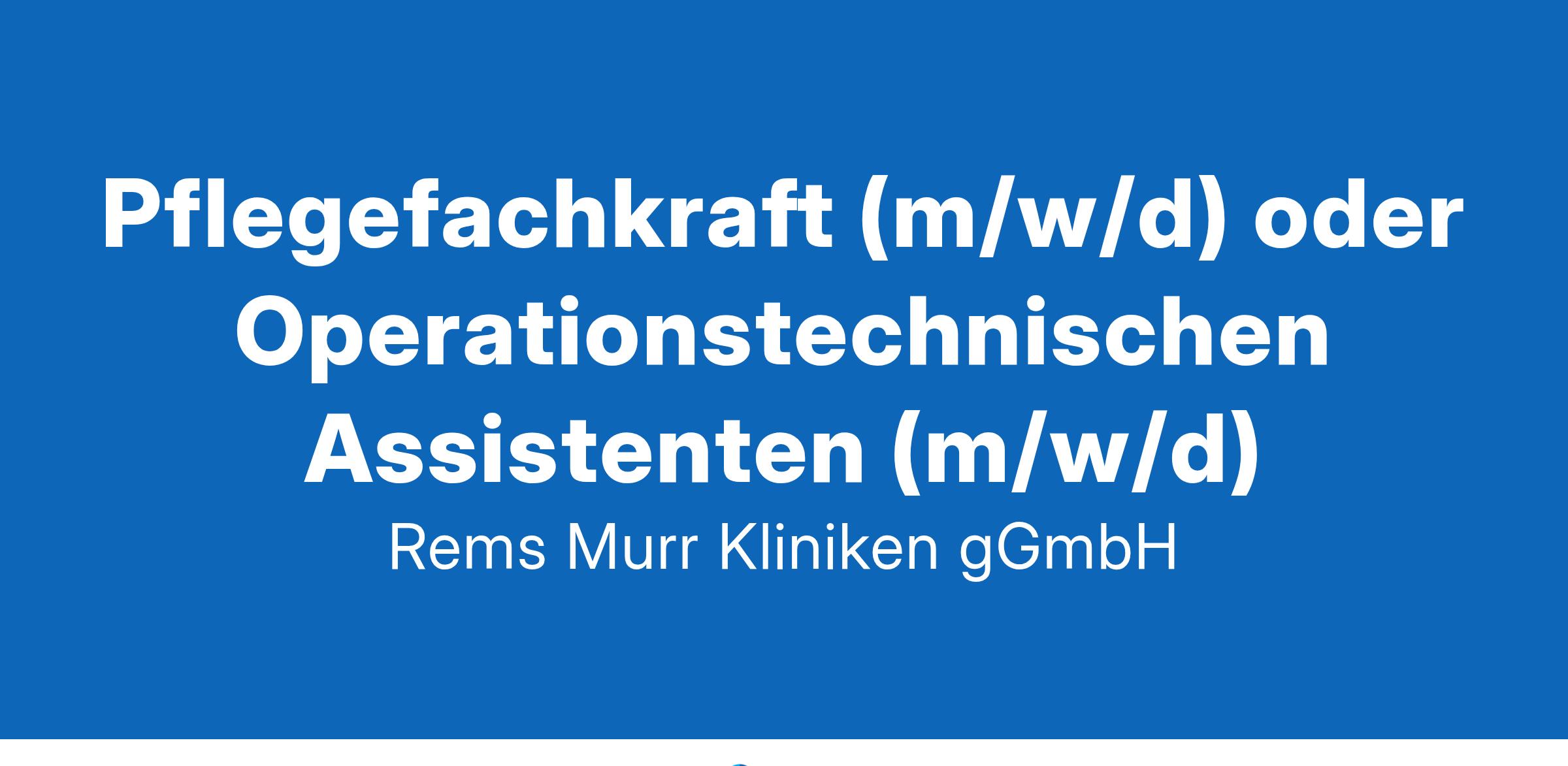 Alles OK im OPWir suchen zum nächstmöglichen Zeitpunkt in Voll- oder Teilzeit (mind. 60%) für unser Klinikum Winnenden einePflegefachkraft (m/w/d) oder Operationstechnischen Assistenten (m/w/d)für unseren Zentral-OPReferenznummer: W-3-254-24Gerne bieten wir Ihnen unbürokratisch und kurzfristig die Möglichkeit einer Hospitation um unseren OP und das tolle Team kennen zu lernen.
