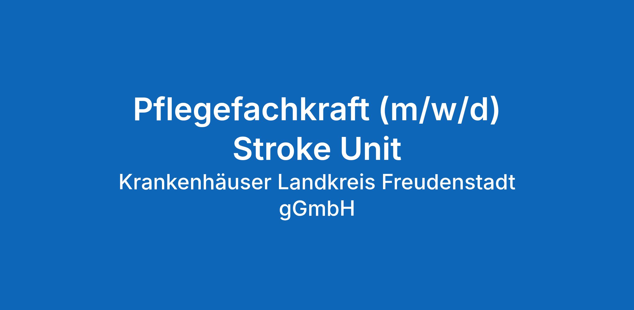 Für den Standort Freudenstadt suchen wir für unsere zertifizierte Stroke Unit zum nächstmöglichen Zeitpunkt eine