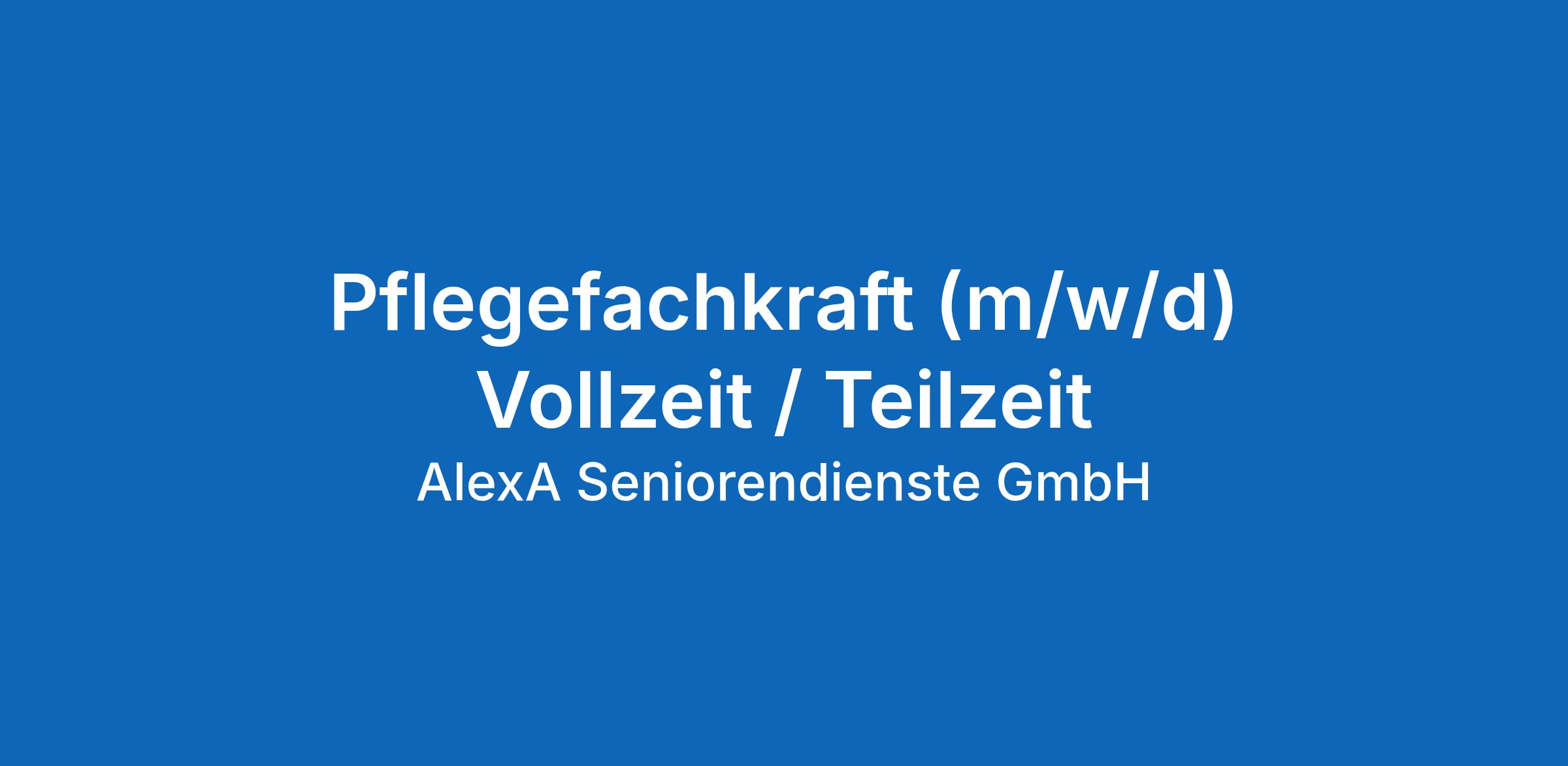 Für unsere AlexA Seniorenresidenz in Pirna suchen wir zum nächstmöglichen Zeitpunkt in Voll- oder Teilzeit eine
