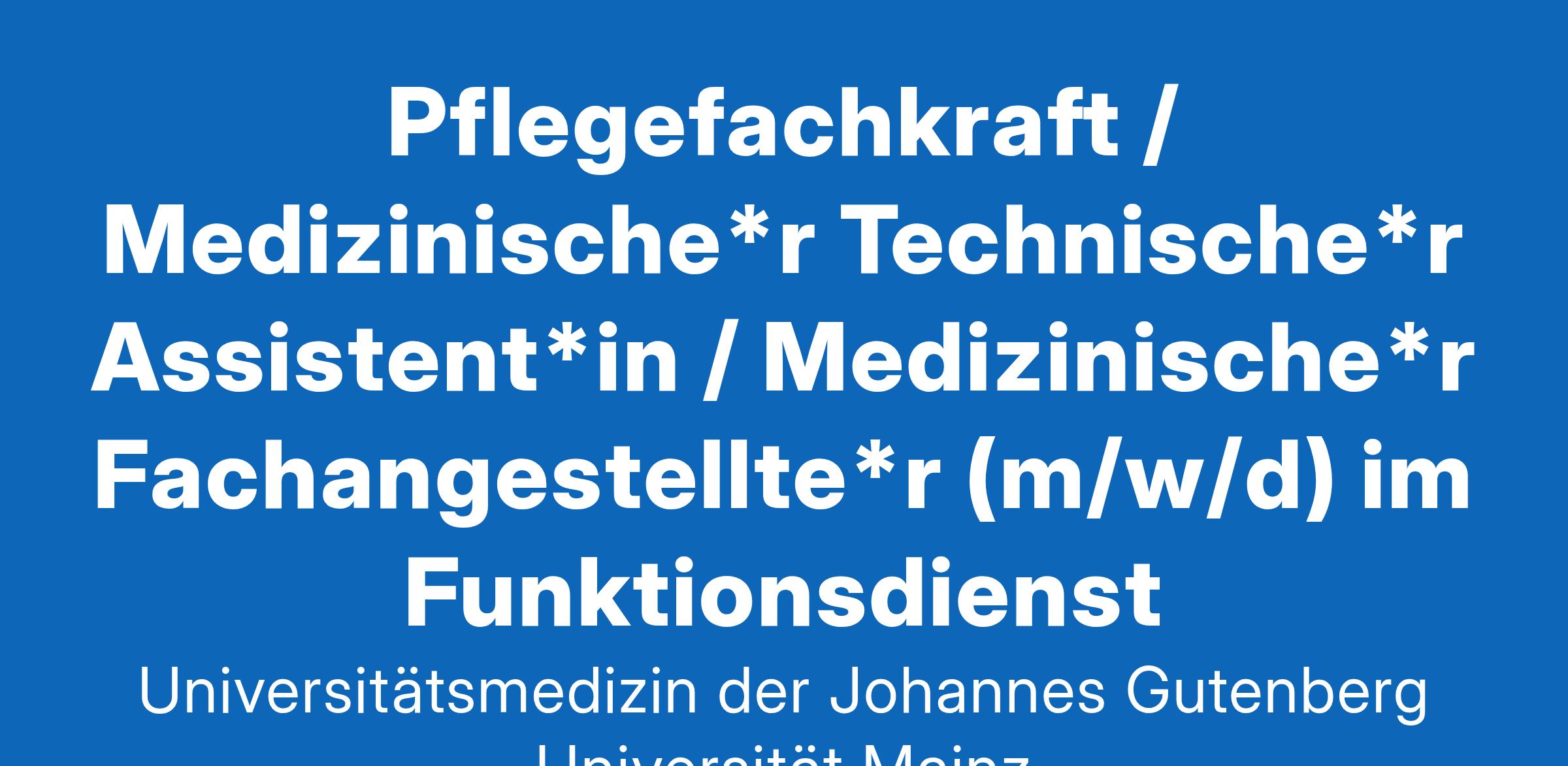 www.unimedizin-mainz.de Bei entsprechender Eignung werden schwerbehinderte Bewerber*innen (m/w/d) bevorzugt berücksichtigt.