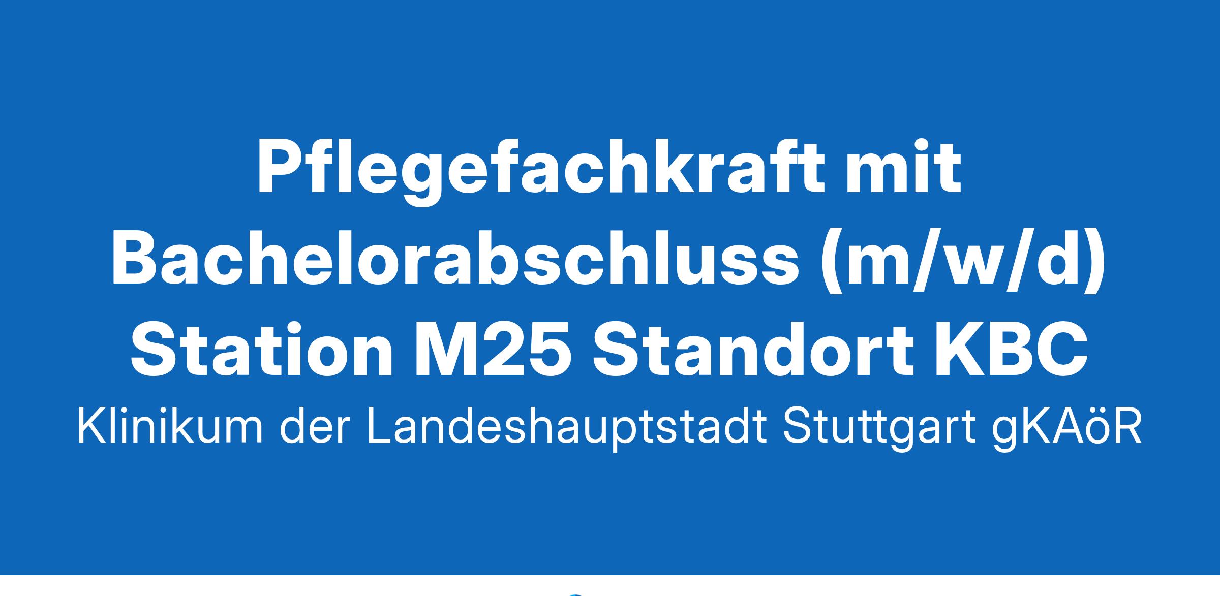 Klinikum Stuttgart - Entscheiden Sie sich für etwas Großes. Wir sind mit unseren drei Häusern „Katharinenhospital“, „Olgahospital“ und „Krankenhaus Bad Cannstatt“ das größte Klinikum in Baden-Württemberg. Über 9000 Mitarbeitende versorgen auf den Stationen, in Operationssälen, Funktionsbereichen die Patient:innen oder sind in Verwaltung, Technik oder IT für den reibungslosen Klinikbetrieb verantwortlich. An zwei attraktiv gelegenen Standorten in Stuttgart bieten wir Ihnen in über 50 Kliniken und Instituten als Maximalversorger und akademisches Lehrkrankenhaus der Universität Tübingen einen sinnstiftenden und zukunftsorientierten Arbeitsplatz. Dabei gilt immer: “Starkes Team. Starkes Klinikum. “Ihre Aufgaben: Für unsere Station M25 am Standort Bad Cannstatt suchen wir qualifizierte Pflegefachkräfte (m/w/d), Gesundheits- und Krankenpfleger:innen (m/w/d) oder Altenpfleger:innen (m/w/d) mit Bachelorabschluss oder gleichwertiger Weiterbildung, die unser pflegerisches Team der M25 engagiert unterstützen und aktiv an der Gestaltung und Optimierung der Station mitwirken.Zu Ihren Hauptaufgaben gehören:Mitarbeit an der Rollenentwicklung für Pflegekräfte in der erweiterten klinischen Pflegepraxisganzheitliche Bereichspflege basierend auf dem Pflegemodell nach Roper-Logan-TierneyPlanung, Durchführung und Evaluation der pflegerischen Versorgung, orientiert an individuellen Wünschen, Bedürfnissen und Möglichkeiten der Patient:innenVorbereitung, Assistenz und Nachsorge bei diagnostischen und therapeutischen MaßnahmenDurchführung der prä- und postoperativen Pflege und ÜberwachungIdentifikation von Verbesserungspotentialen in der pflegerischen Versorgung und darauf aufbauend Entwicklung praxisrelevanter Fragestellungenenge Kommunikation und Kooperation mit allen Akteuren im interprofessionellen Teampsychosoziale Begleitung und Beratung von Patienten:innen und AngehörigenEinsatz von spezifischen und fallbezogenen Screening- und AssessmentinstrumentenÜbernahme und Evaluieren von komplexen Pflege- und VersorgungssituationenImplementierung und kontinuierliche Vernetzung pflegewissenschaftlicher und praxisbasierter Erkenntnisse in die PraxisMitarbeit in Pflege- und ForschungsprojektenWir erwarten:Sie sind examinierte Pflegefachkraft (m/w/d), examinierte:r Gesundheits- und Krankenpfleger:in (m/w/d) oder examinierte:r Gesundheits- und Kinderkrankenpfleger:in (m/w/d)Sie haben erfolgreich einen pflegebezogenen Studiengang „Angewandte Gesundheits- und Pflegewissenschaften (B. Sc.)“ (B.A./B.Sc.) bzw. ein vergleichbares Studium abgeschlossen oder schließen dieses in Zukunft ab oder verfügen durch Ihr Erfahrungswissen in Kombination mit theoretischen Grundlagen über eine mit dem Pflegestudium vergleichbare QualifikationSie haben Organisationskompetenz und VerantwortungsbewusstseinSie besitzen umfassende pflegerische Kompetenzen und haben Freude am BerufEngagement und Teamfähigkeit sind für Sie selbstverständlich Wir bieten:Ein verantwortungsvolles und vielseitiges AufgabengebietEine kooperative, vertrauensvolle Zusammenarbeit mit guter Arbeitsatmosphäre und Integration in ein multiprofessionelles und interprofessionelles TeamEin individuelles, strukturiertes und fachspezifisches EinarbeitungskonzeptUnterstützungsangebote zur Vereinbarkeit von Beruf und Familie:Familienfreundliche ArbeitszeitmodelleBetriebliche Kindertageseinrichtung und Möglichkeit der FerienbetreuungIndividuelle Begleitung beim Wiedereinstieg nach ElternzeitBei Tätigkeit im Springerpool: Dienstplan nach WunschGroßes Angebot an innerbetrieblichen Aus-, Fort- und Weiterbildungsmöglichkeiten mit rund 120 Kursplätzen über unsere Akademie für Gesundheitsberufe sowie vielfältige AufstiegsmöglichkeitenRückzahlungsverpflichtungen aus einer Fachweiterbildung können ggf. übernommen werdenWeitere Leistungen: Betriebliches Gesundheitsmanagement, Sportangebote, vergünstigtes Essen im Betriebsrestaurant, Firmenticket VVSEine leistungsgerechte, tariflich abgesicherte Vergütung nach den Tarifverträgen des öffentlichen Dienstes (TVÖD)Eine überwiegend arbeitgeberfinanzierte betriebliche Altersvorsorge (ZVK)Ein unbefristetes ArbeitsverhältnisDie Stadt Stuttgart bietet als Großstadt vielseitige Kultur- und Freizeitangebote.Das Klinikum Stuttgart ist seit 2008 als familienfreundliches Unternehmen durch „berufundfamilie GmbH“ zertifiziertFür Fragen und Informationen steht Ihnen Hr. Oliver Lang, (Pflegerische Zentrumsleitung) unter 0711/278 - 32050 zur Verfügung.