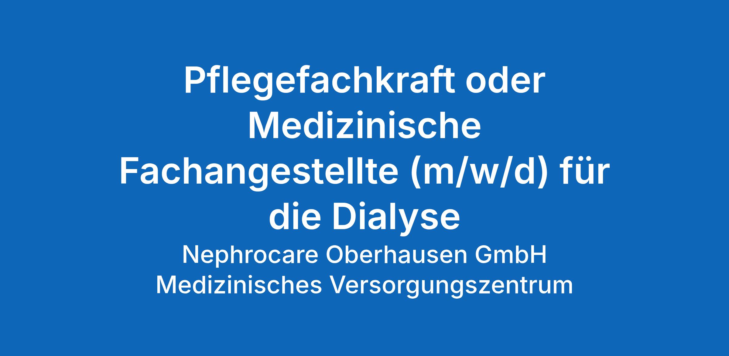 Arbeitsort: Nephrocare Oberhausen GmbH, Blumenthalstraße 53-55, 46045 Oberhausen