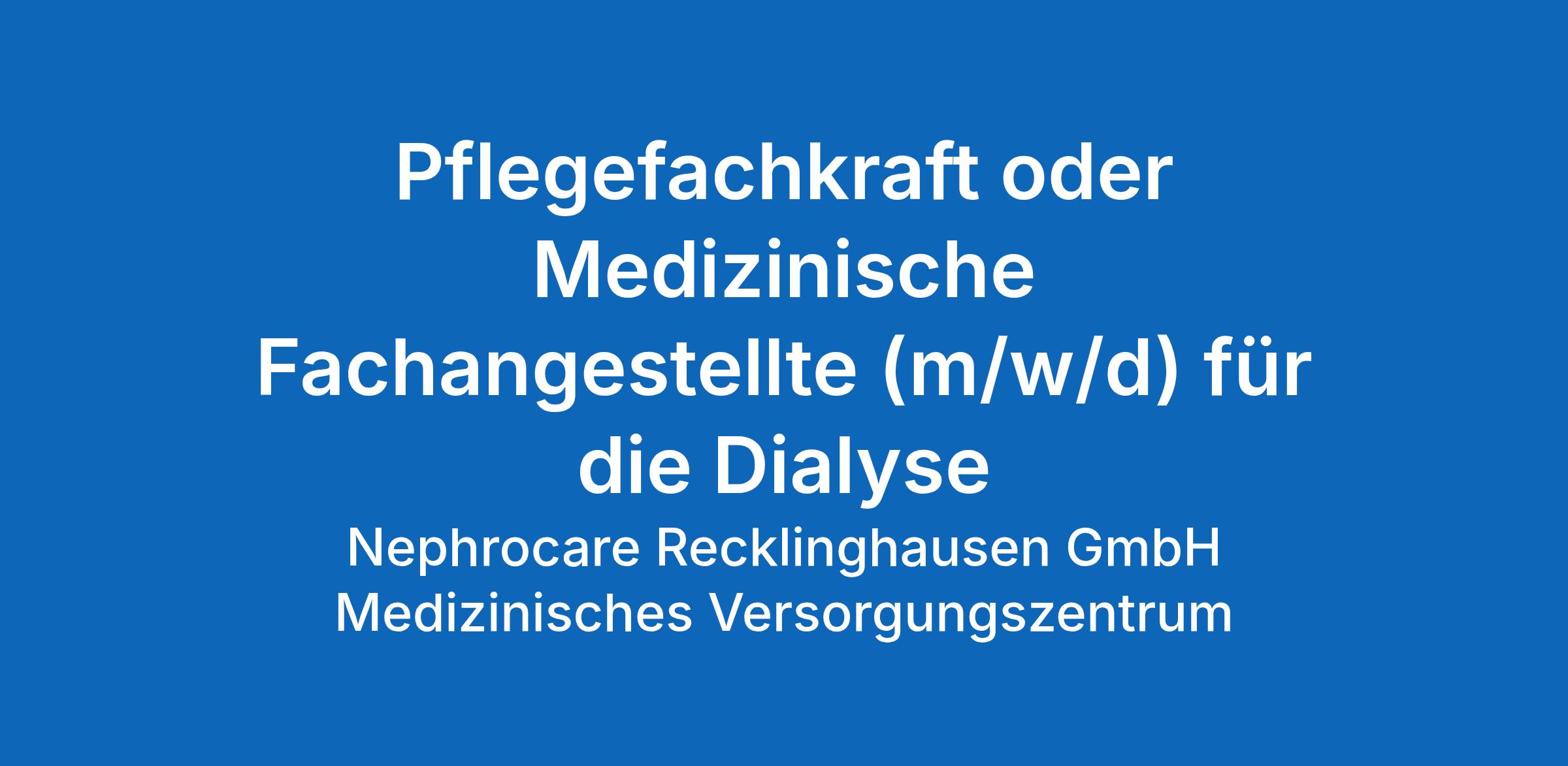 Arbeitsort: Nephrocare Recklinghausen GmbH, Medizinisches Versorgungszentrum, Röntgenstr. 33, 45661 Recklinghausen