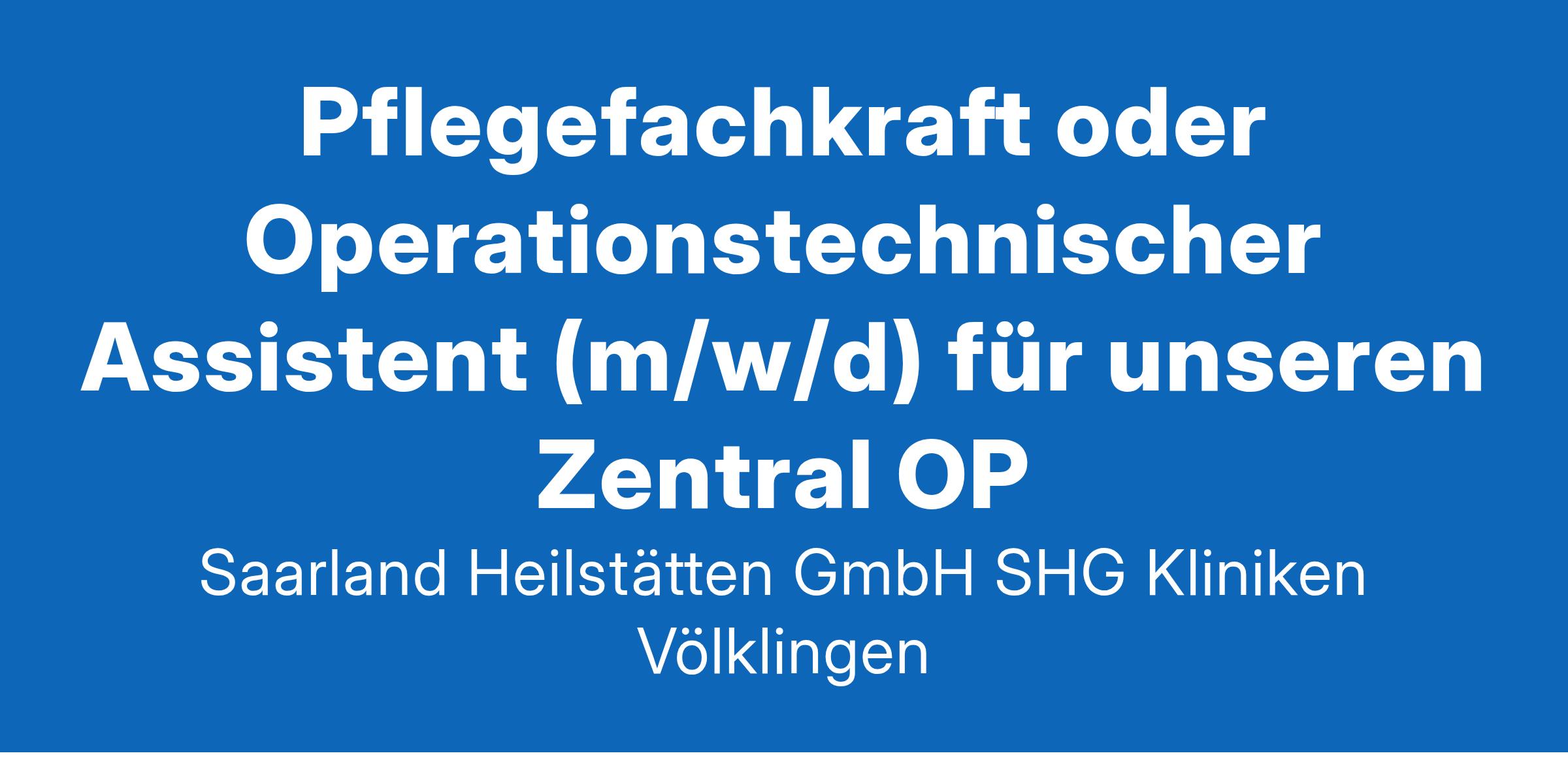 Pflegefachkraft oder Operationstechnischer Assistent (m/w/d) für unseren Zentral OP Werde ein Teil von SHG: Gemeinsam! Hochmoderne Medizin und Kompetenz unter einem Dach Wir bieten dir Verlässlichkeit: Dienstplan nach Wunsch und individueller Absprache. Erstelle deinen Dienstplan bis zu 3 Monate im voraus. Flex-Pool: Maximale Flexibilität bei der Arbeitszeitgestaltung, attraktive Sondervergütung und die Möglichkeit, deinen Einsatzbereich aktiv mitzugestalten. Soziale Leistungen: Spektakuläre Firmenfeiern und Betriebsausflüge, fachübergreifende, qualifizierte interne Fort- und Weiterbildungen zur Erweiterung deines Wissensspektrums. Wir suchen Pflegefachkräfte oder OTA (m/w/d) für unseren Zentral OP QR-Code scannen, mehr erfahren. Wir freuen uns auf Dich! Bewerbungen an: SHG-Kliniken Völklingen, Pflegedirektion, Sabine Keller oder Jennifer Paul, Richardstraße 5-9, D-66333 Völklingen