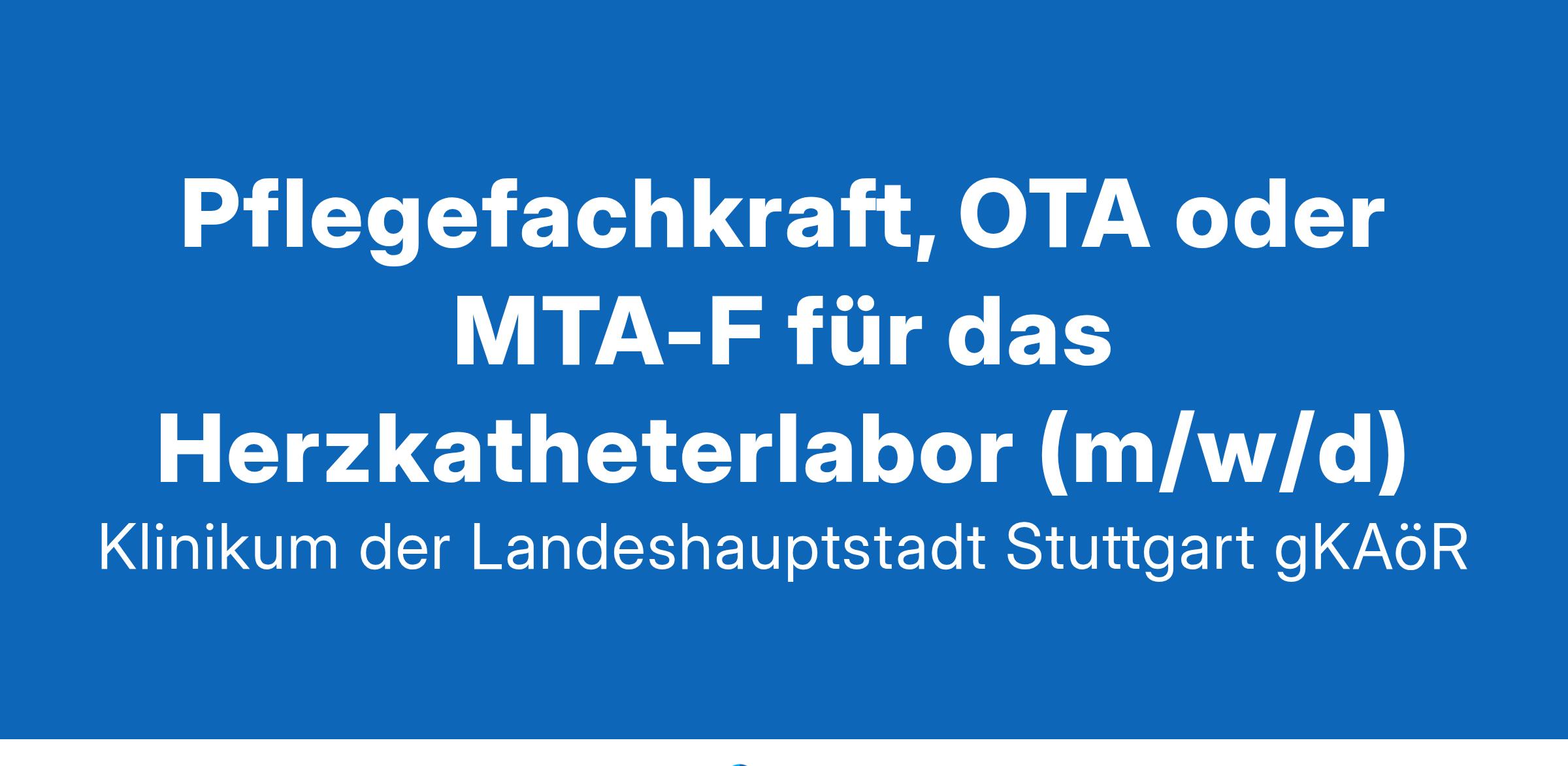Klinikum Stuttgart - Entscheiden Sie sich für etwas Großes. Wir sind mit unseren drei Häusern „Katharinenhospital“, „Olgahospital“ und „Krankenhaus Bad Cannstatt“ das größte Klinikum in Baden-Württemberg. Über 9000 Mitarbeitende versorgen auf den Stationen, in Operationssälen, Funktionsbereichen die Patient:innen oder sind in Verwaltung, Technik oder IT für den reibungslosen Klinikbetrieb verantwortlich. An zwei attraktiv gelegenen Standorten in Stuttgart bieten wir Ihnen in über 50 Kliniken und Instituten als Maximalversorger und akademisches Lehrkrankenhaus der Universität Tübingen einen sinnstiftenden und zukunftsorientierten Arbeitsplatz. Dabei gilt immer: “Starkes Team. Starkes Klinikum. “Ihre Aufgaben: Für das Herzkatheterlabor suchen wir eine Pflegefachkraft, OTA oder MTA-F (m/w/d), welche unser pflegerisches Team engagiert unterstützt. Im Katharinenhospital werden jährlich über 3000 Herzkatheteruntersuchungen durchgeführt. Unser Pflegekonzept verfolgt die ganzheitliche Bereichspflege und basiert auf dem Pflegekonzept nach Roper- Logan- Tierney. Dies wird unterstützt durch die fachspezifische und kinästhetische Kompetenz unserer Mitarbeiter.