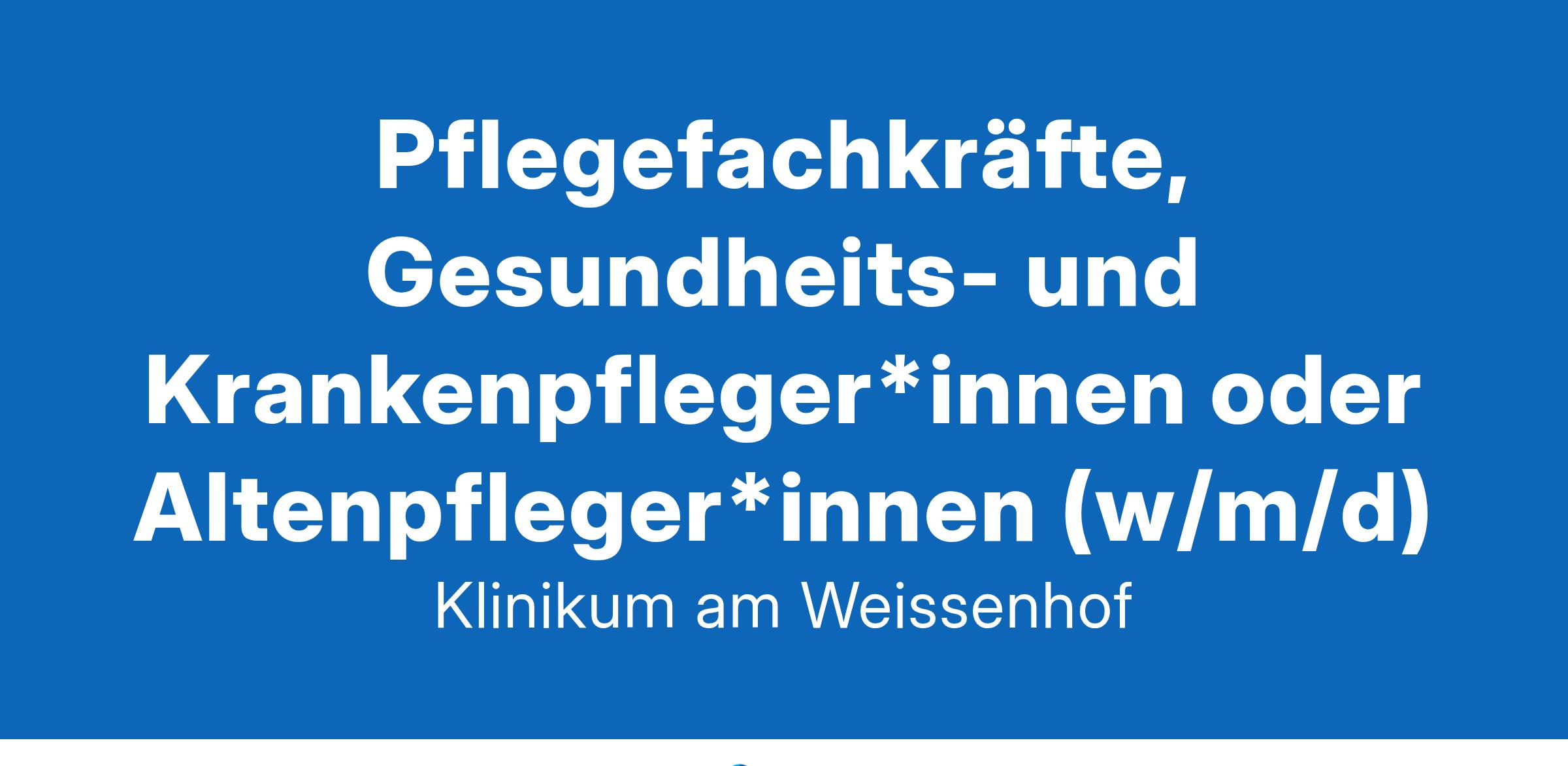 zuverlässig. fachlich. patientenorientiert. Wertschätzung. Firmenportrait Machen Sie das Klinikum am Weissenhof, Zentrum für Psychiatrie, in Weinsberg auch zu Ihrem Ding und starten Sie bei uns voll durch! In unserem psychiatrischen Krankenhaus werden in sieben eigenständigen Kliniken verschiedener Fachrichtungen an sieben Standorten jährlich rund 17.000 Patient*innen stationär, tagesklinisch und ambulant behandelt. Mit rund 1.650 Mitarbeitenden ist das Klinikum einer der größten Arbeitgeber der Region Heilbronn-Franken. Das Klinikum am Weissenhof ist als Akademisches Lehrkrankenhaus der Universität Heidelberg anerkannt und in die Lehre im Fach Psychiatrie und Psychotherapie der Medizinischen Fakultät eingebunden. In der Klinik für Allgemeine Psychiatrie und Psychotherapie des Klinikums am Weissenhof werden Menschen mit Erkrankungen aus dem gesamten Spektrum psychiatrischer Diagnosen behandelt. Das Angebot richtet sich an Patient*innen im Alter von 18 bis 64 Jahren. Die Klinik bietet stationäre, teilstationäre und ambulante Behandlungsangebote am Standort in Weinsberg an. Der Mensch steht im Mittelpunkt unseres pflegerischen Handelns. Unser Anliegen hierbei ist die Förderung und Erhaltung seiner Gesundheit, Selbstbestimmung, Eigenverantwortlichkeit und Beziehungsfähigkeit in allen Phasen seines Lebens. Die Klinik für Allgemeine Psychiatrie und Psychotherapie sucht zum nächstmöglichen Zeitpunkt Pflegefachkräfte, Gesundheits- und Krankenpfleger*innen oder Altenpfleger*innen (w/m/d) für unsere Klinik Allgemeine Psychiatrie und Psychotherapie Ihre Aufgaben Sicherstellen einer fachgerechten Pflege Gestaltung des Problemlösungs- und Beziehungsprozesses im Bezugspflegesystem Mitwirkung beim Aufbau, der Koordination und Weiterentwicklung von Organisationsprozessen und Behandlungsabläufen Beratung, Anleitung und Unterstützung von Patient*innen und Angehörigen zur Entwicklung und Erhaltung bzw. Wiederherstellung von Selbstpflegekompetenzen Durchführung pflegetherapeutischer Einzel- und Gruppeninterventionen Planung und Durchführung des Pflegeprozesses sowie Abstimmung im interdisziplinären Team Teilnahme am Fortbildungsprogramm der Klinik Ihr Profil abgeschlossene Berufsausbildung als Pflegefachkraft, Gesundheits- und Krankenpfleger*in oder Altenpfleger*in gutes Grundverständnis der psychiatrischen Krankenpflege Interesse und Motivation zur intensiven Beziehungsarbeit hohes Maß an Eigenreflexion, Konflikt- und Problemlösefähigkeit Bereitschaft zur Mitwirkung an der Konzeptentwicklung und Teambildung sicheres Anwenden des Pflegeprozesses und der Pflegedokumentation Bereitschaft zum Drei-Schicht-Betrieb Unser Angebot ein interessanter und verantwortungsvoller Arbeitsplatz mit großem Gestaltungsspielraum eine tarifliche Eingruppierung im Rahmen des TV-L in Entgeltgruppe KR 8 inklusive Zahlung von festen monatlichen Zulagen sowie Zuschläge für die Übernahme von Diensten in der Nacht, am Wochenende und an Feiertagen die Möglichkeit zur persönlichen und fachlichen Weiterentwicklung gute Anleitung und Einarbeitung in das Arbeitsfeld ein gutes Arbeitsklima in einem motivierten Team moderne Pflegetechniken, wie z.B. Ohrakupunktur und Aromapflege die Möglichkeit der Kinderbetreuung Ein wertschätzender Austausch, Angebote zur individuellen Work-Life-Balance sowie zur Vereinbarkeit von Familie und Beruf sind bei uns wichtiger Bestandteil. Ob betriebliches Gesundheitsmanagement, die klinikeigene Kita oder die schöne Arbeitsumgebung — bei uns können Sie die täglichen Herausforderungen gelassen meistern. Wir freuen uns auf Ihre Online-Bewerbung! Zusatzinfos: Für Fragen wenden Sie sich gerne an Frau Heike Baumann, Pflegedienstleiterin der Klinik für Allgemeine Psychiatrie und Psychotherapie, Telefon 07134 75-1110. Ansprechpartnerin in der Personalabteilung ist Frau Cornelia Hettinger, Telefon 07134 75-4204. Eine Beschäftigung ist in Voll- oder Teilzeit möglich. Die Inklusion von Menschen mit Behinderung entspricht unserem Selbstverständnis und wir begrüßen daher Ihre Bewerbung. Klinikum am Weissenhof, Zentrum für Psychiatrie, Akademisches Lehrkrankenhaus der Universität Heidelberg, 74189 Weinsberg