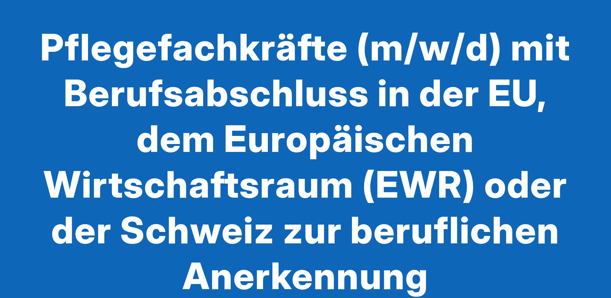 Pflegefachkräfte (m/w/d) mit Berufsabschluss in der EU, dem Europäischen Wirtschaftsraum (EWR) oder der Schweiz zur beruflichen Anerkennung