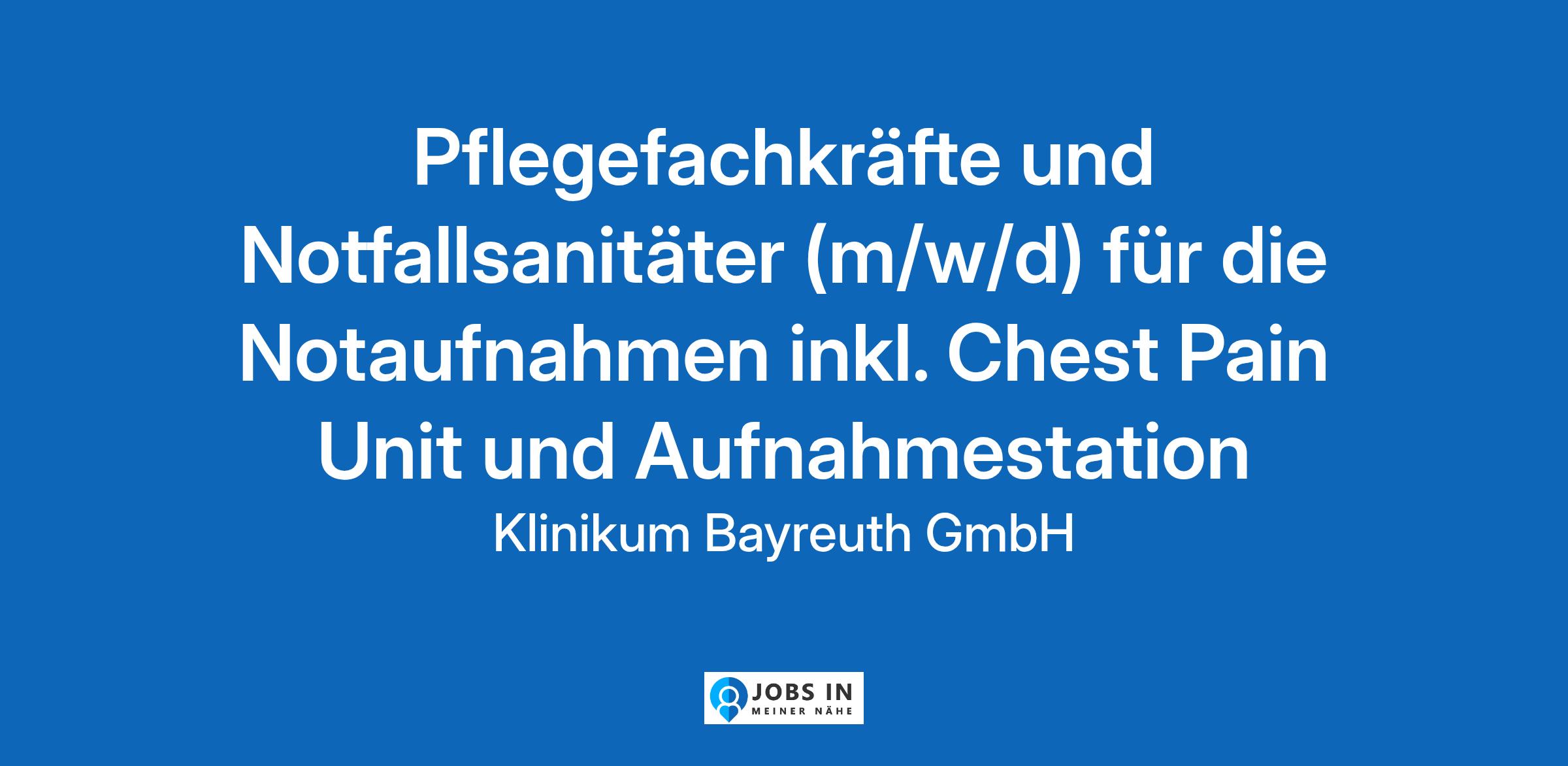 Uns vertrauen pro Jahr mehr als 100.000 Patientinnen und Patienten. Wir decken nahezu das gesamte medizinische und pflegerische Spektrum ab â und das auf hohem Niveau. Dabei macht die Pflege den größten Anteil an Angestellten bei der Klinikum Bayreuth GmbH aus. Die Begleitung und Unterstützung unserer Patienten und Patientinnen sind besonders wichtig - fachliche wie menschlich. Aber vor allem: Wir fühlen uns den Menschen verpflichtet.