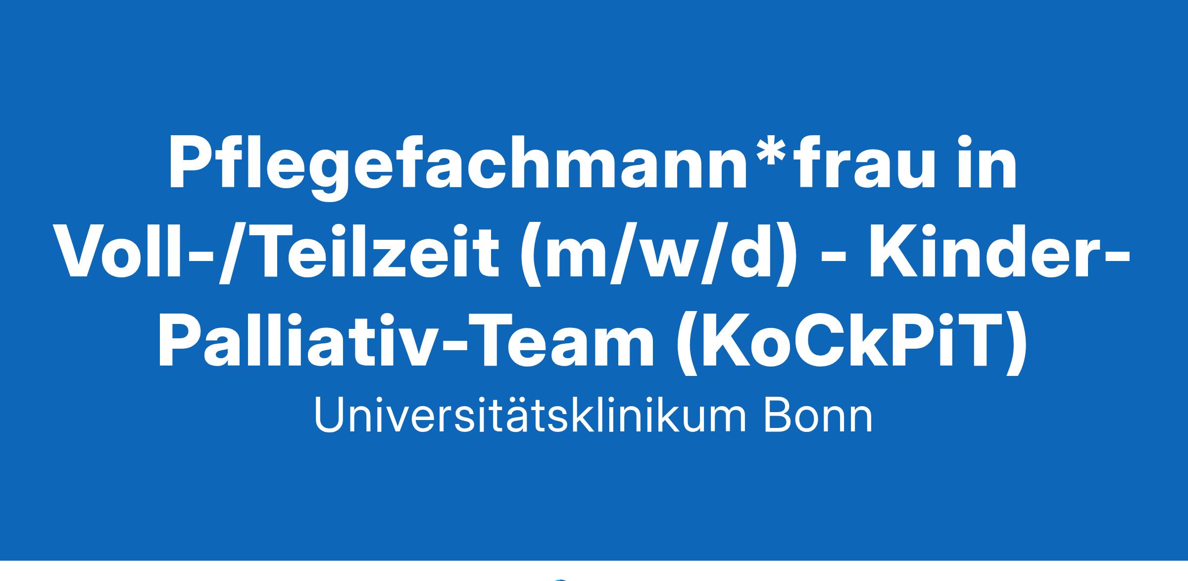 Gestalten Sie mit uns die Zukunft der Pflege! Wir sind der Arbeitgeber für alle, die mehr wollen. Mehr Abwechslung, mehr Herausforderung, mehr Perspektiven. Machen Sie den nächsten Karriereschritt und entwickeln Sie sich bei uns genau in die berufliche Richtung, die Ihren Stärken entspricht. Für das Kinder-Palliativ-Team (KoCkPiT) im Zentrum für Kinder- und Jugendmedizin suchen wir zum nächstmöglichen Zeitpunkt