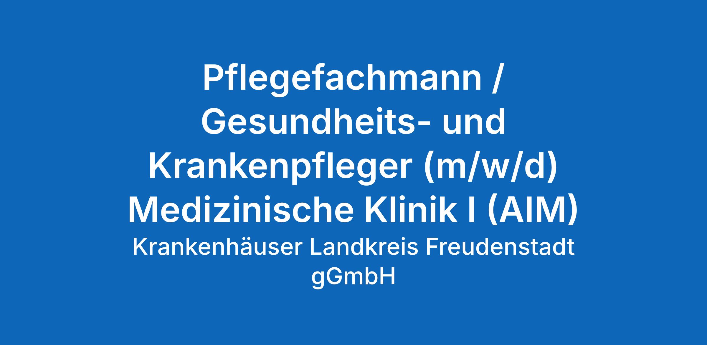 Für den Standort Freudenstadt suchen wir für unsere Medizinische Klinik I (AIM) zum nächstmöglichen Termin einen