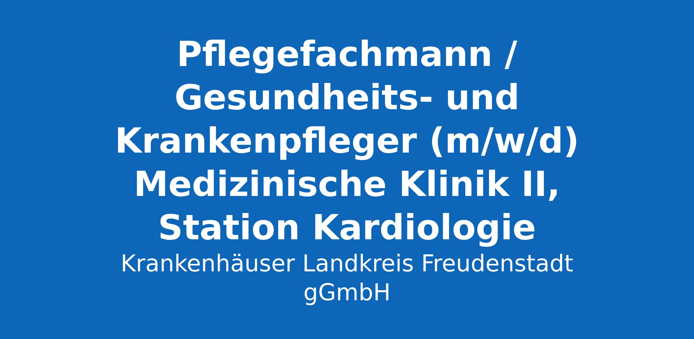 Für den Standort Freudenstadt suchen wir für unsere Medizinische Klinik II, Station Kardiologie zum nächstmöglichen Zeitpunkt einen