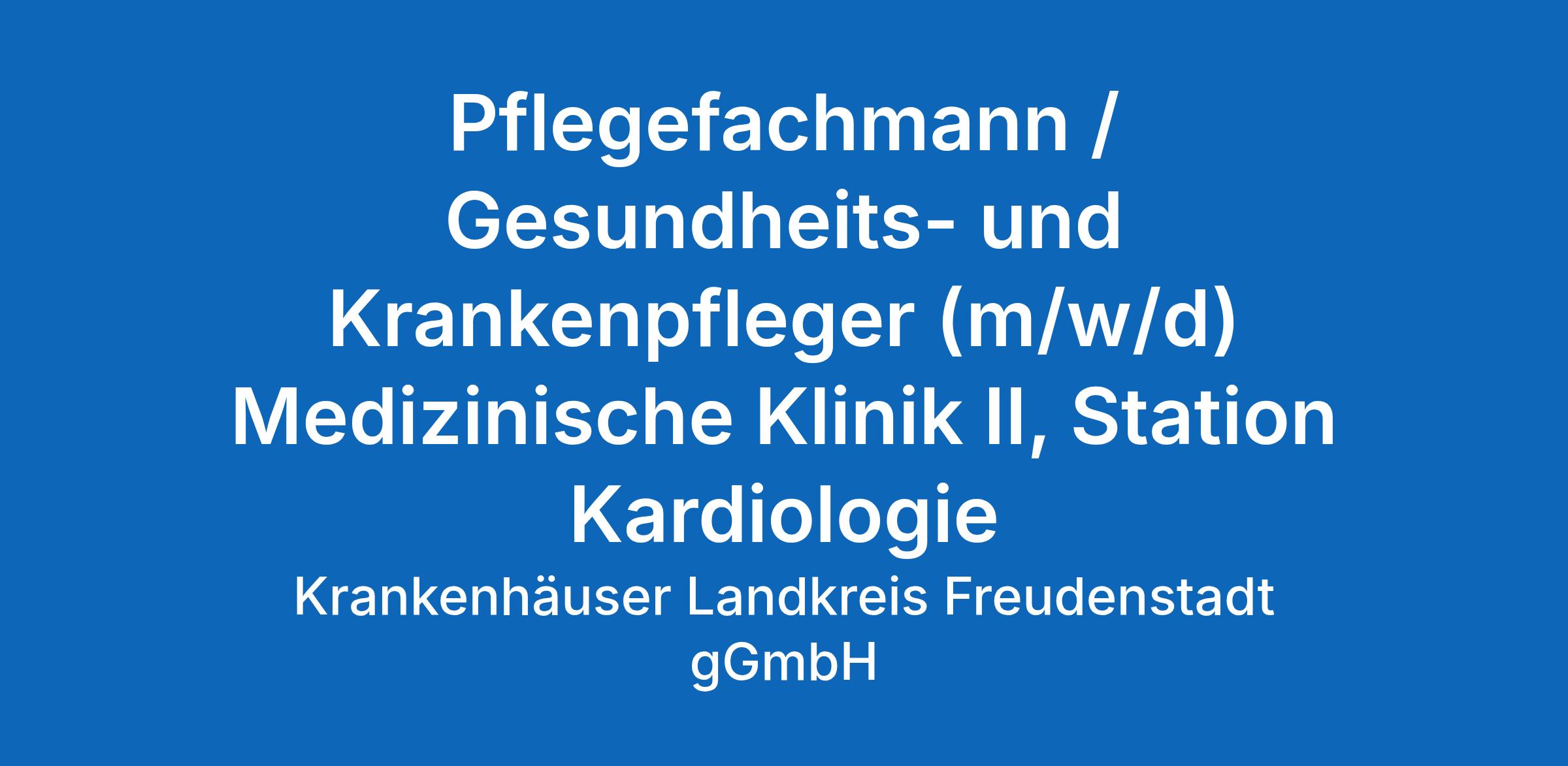 Für den Standort Freudenstadt suchen wir für unsere Medizinische Klinik II, Station Kardiologie zum nächstmöglichen Zeitpunkt einen
