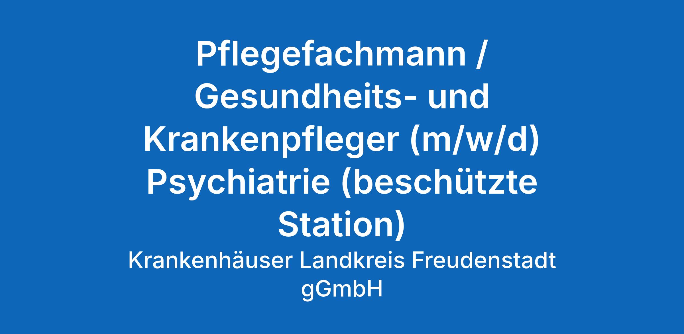 Für den Standort Freudenstadt suchen wir für die Psychiatrie (beschützte Station) zum nächstmöglichen Termin