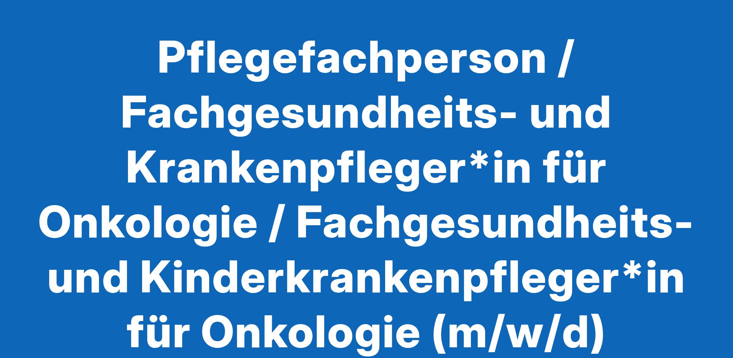 Pflegefachperson / Fachgesundheits- und Krankenpfleger*in für Onkologie / Fachgesundheits- und Kinderkrankenpfleger*in für Onkologie (m/w/d)
