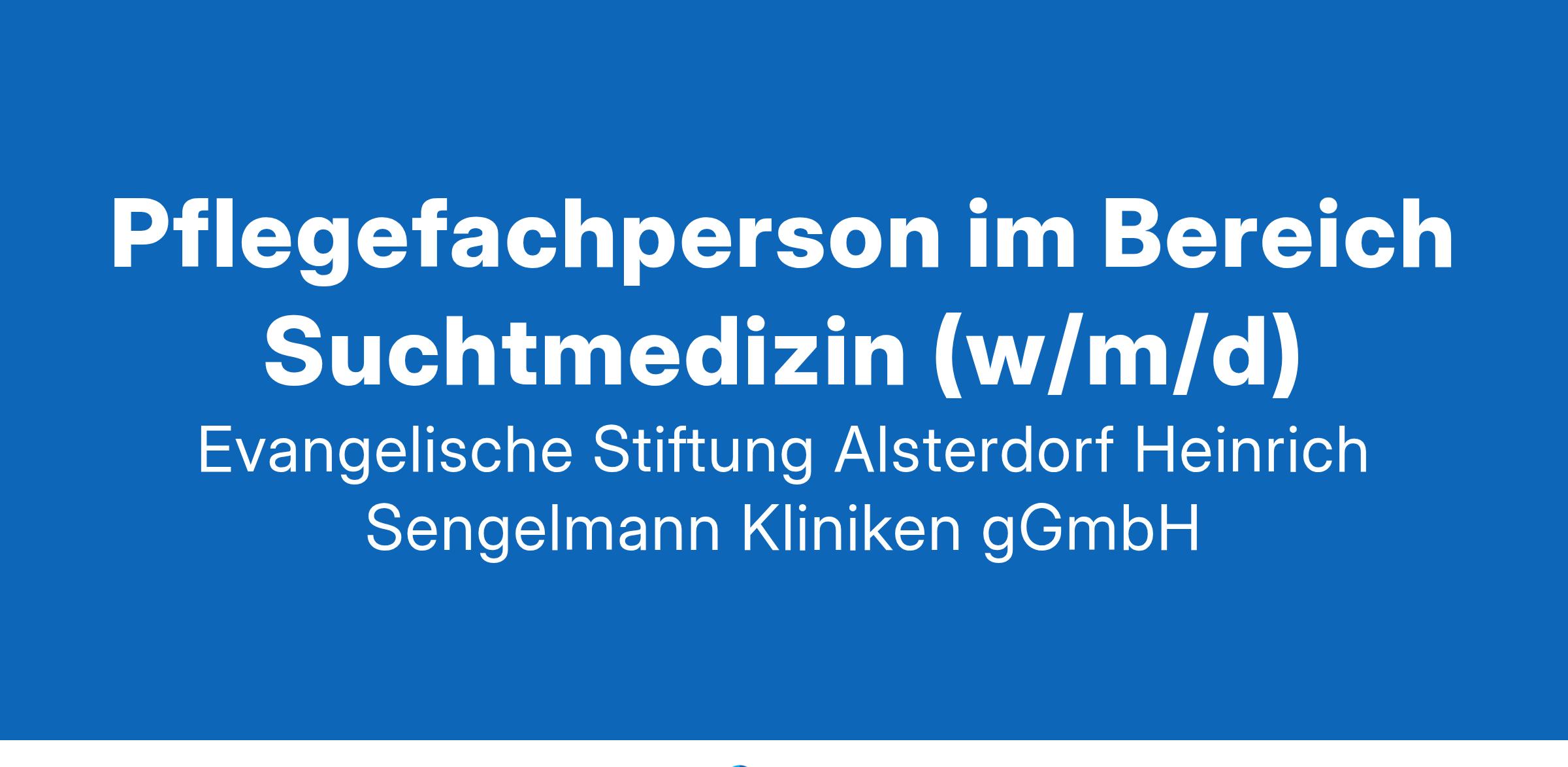 „Hohe Arbeitszufriedenheit und eine gute Atmosphäre: Das ist uns wichtig.“Die Heinrich Sengelmann Kliniken für Psychiatrie, Psychotherapie und Psychosomatik bieten stationäre, tagesklinische und ambulante Behandlungen für Patient*innen der Hansestadt Hamburg, Schleswig Holstein sowie überregional. INDIVIDUELL – AUTHENTISCH – PERSÖNLICH – DAS SIND WIR! Die Heinrich Sengelmann Kliniken gehören in Norddeutschland zu den führenden Kliniken im Bereich Psychiatrie, Psychotherapie und Psychosomatik. Auch überregional sind wir für unsere Erfahrung und Kompetenz bei der Behandlung seelischer Störungen bekannt. Menschen sind unser Leben! Wenn das bei Dir genauso ist, freuen wir uns auf deine Bewerbung! Pflegefachperson im Bereich Suchtmedizin (w/m/d) Arbeitsumfeld Unsere Station B ist spezialisiert auf den qualifizierten Entzug bei Alkohol- und Medikamentenabhängigkeit. So findet neben der medizinisch orientierten Behandlung auch eine gezielte Förderung der Behandlungs- und Abstinenzmotivation statt. Die suchttherapeutische Pflege und Zeit für professionelle Kommunikation sind prägende Merkmale unserer Zusammenarbeit. Du hast (bisher) keine Erfahrungen in der psychiatrischen Pflege? Kein Problem! Mit unserem umfangreichen Einarbeitungskonzept ist eine optimale fachliche Einarbeitung für dich gesichert. Wir bieten
