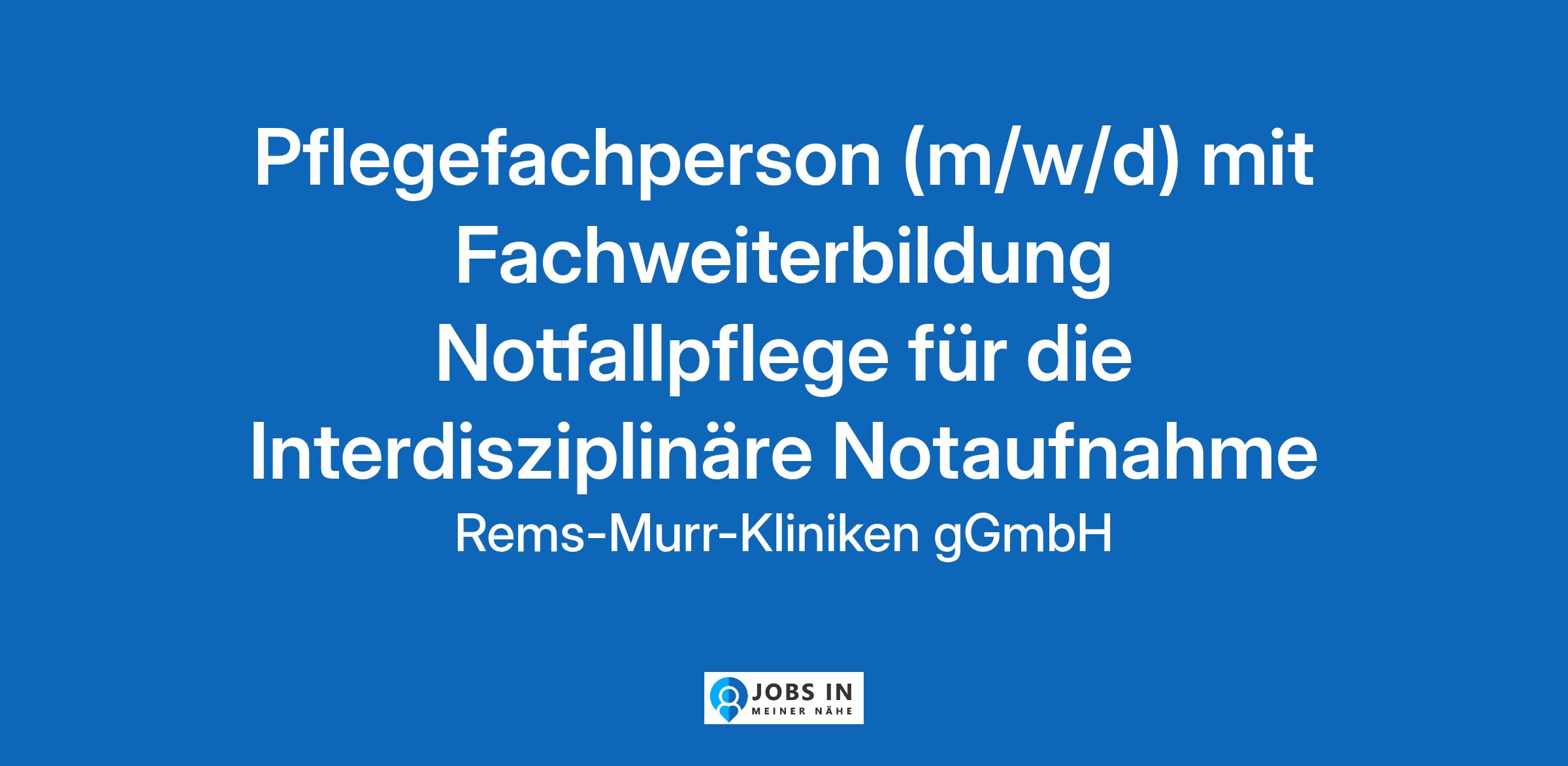 Wir suchen ab sofort eine herzliche und engagierte Pflegefachperson für unser Team in der Interdisziplinären Notaufnahme am Standort in Winnenden. Bei uns steht nicht nur die medizinische Versorgung, sondern auch der zwischenmenschliche Aspekt im Vordergrund. Wenn Sie also auf der Suche nach einer positiven beruflichen Herausforderung sind, dann sind Sie bei uns genau richtig.